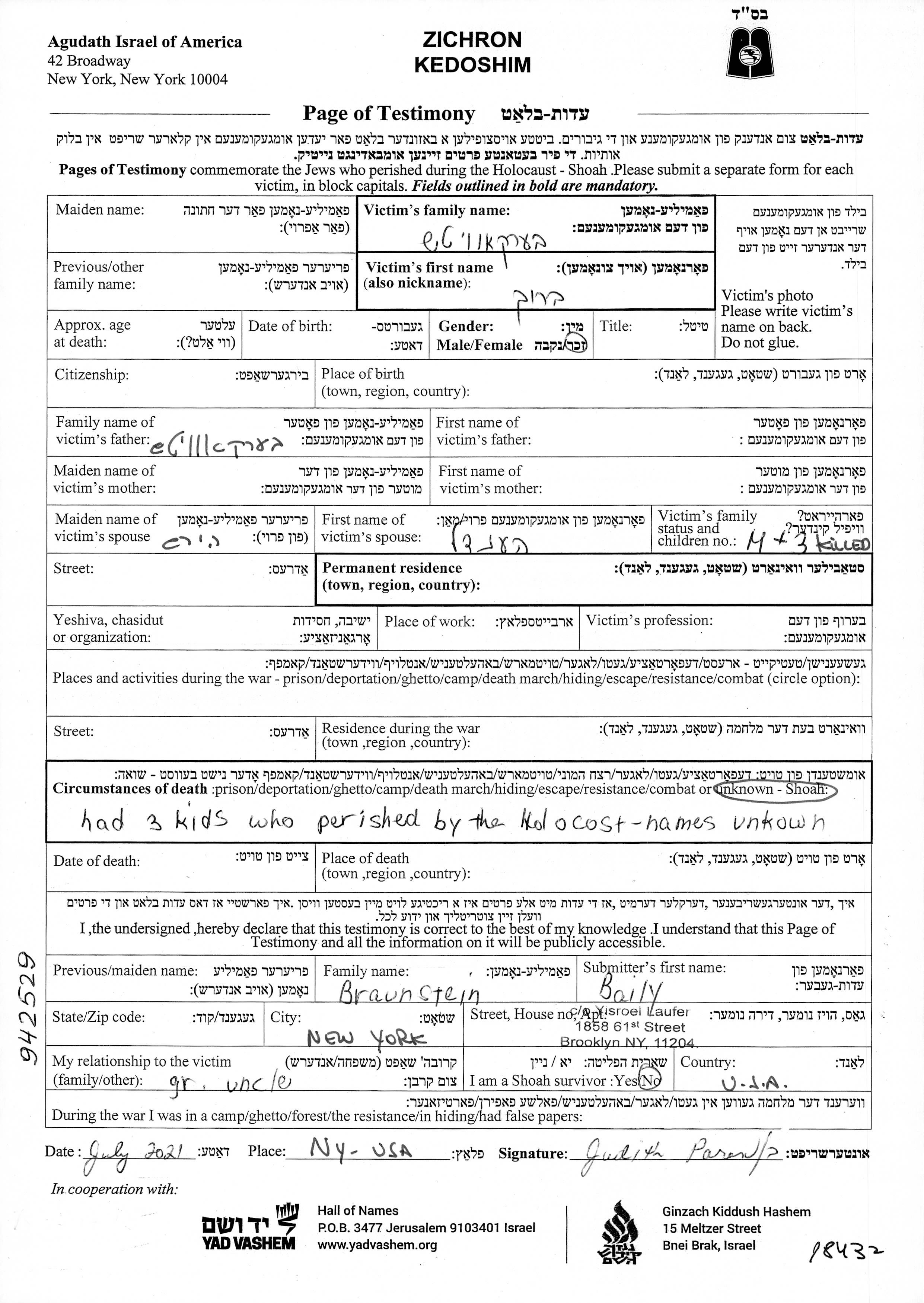 Barukh Berkovich. Er war mit Hendel, geb. Hirsh Verheiratet.