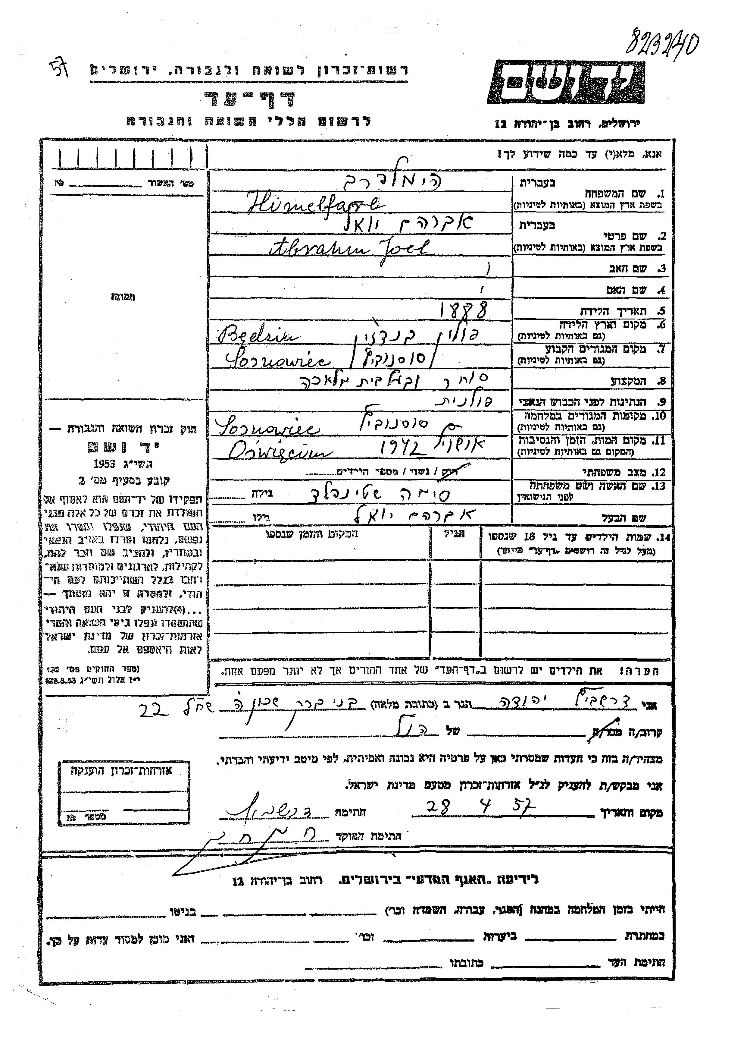 Avraham Yoel Himelfarb wurde im Jahr 1888 in Polen geboren. Vor dem Zweiten Weltkrieg lebte er in Sosnowiec, Polen.