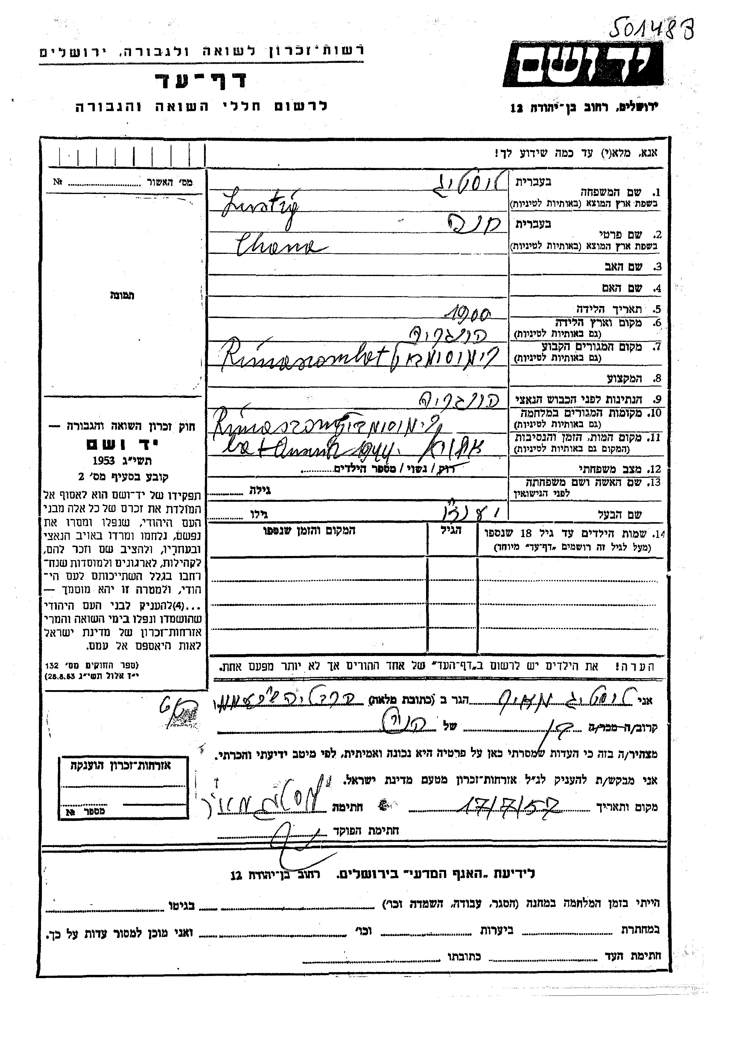 Suche nach einem Todesjahr im Zeitraum der Holocaust: 1933 bis 1945. Bitte wählen Sie 'Exakt' im Auswahlmenü, um nur nach einem einzelnen Jahr zu suchen, alternativ können Sie die flexibleren Optionen '+/- 2 Jahre' oder '+/- 5 Jahre' wählen.