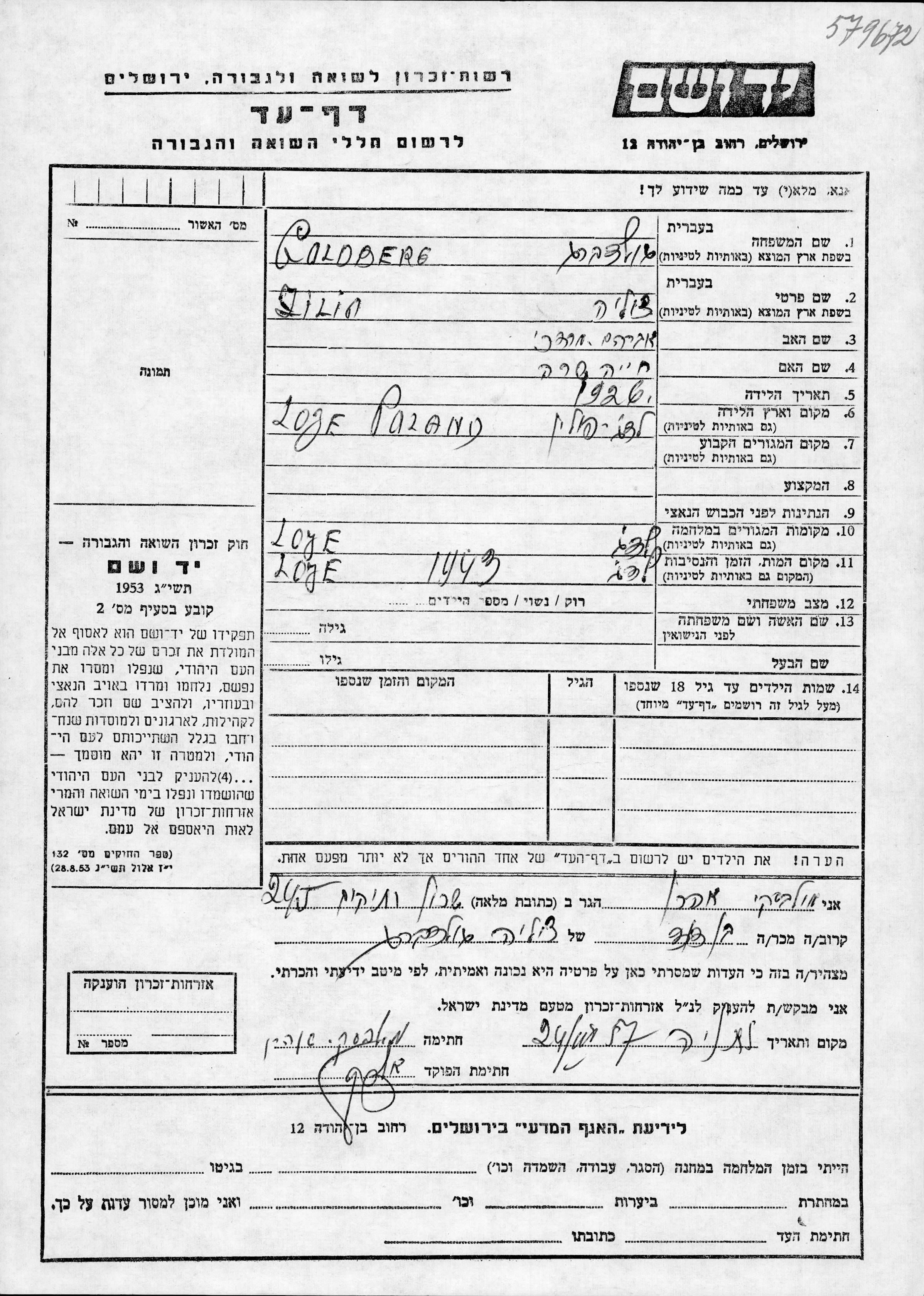Zilia Goldberg wurde im Jahr 1926 in Lodz, Polen geboren. Sie war die Tochter von Avraham Mordekhai und Khaia Sara. Während des Krieges war sie in Lodz, Polen.