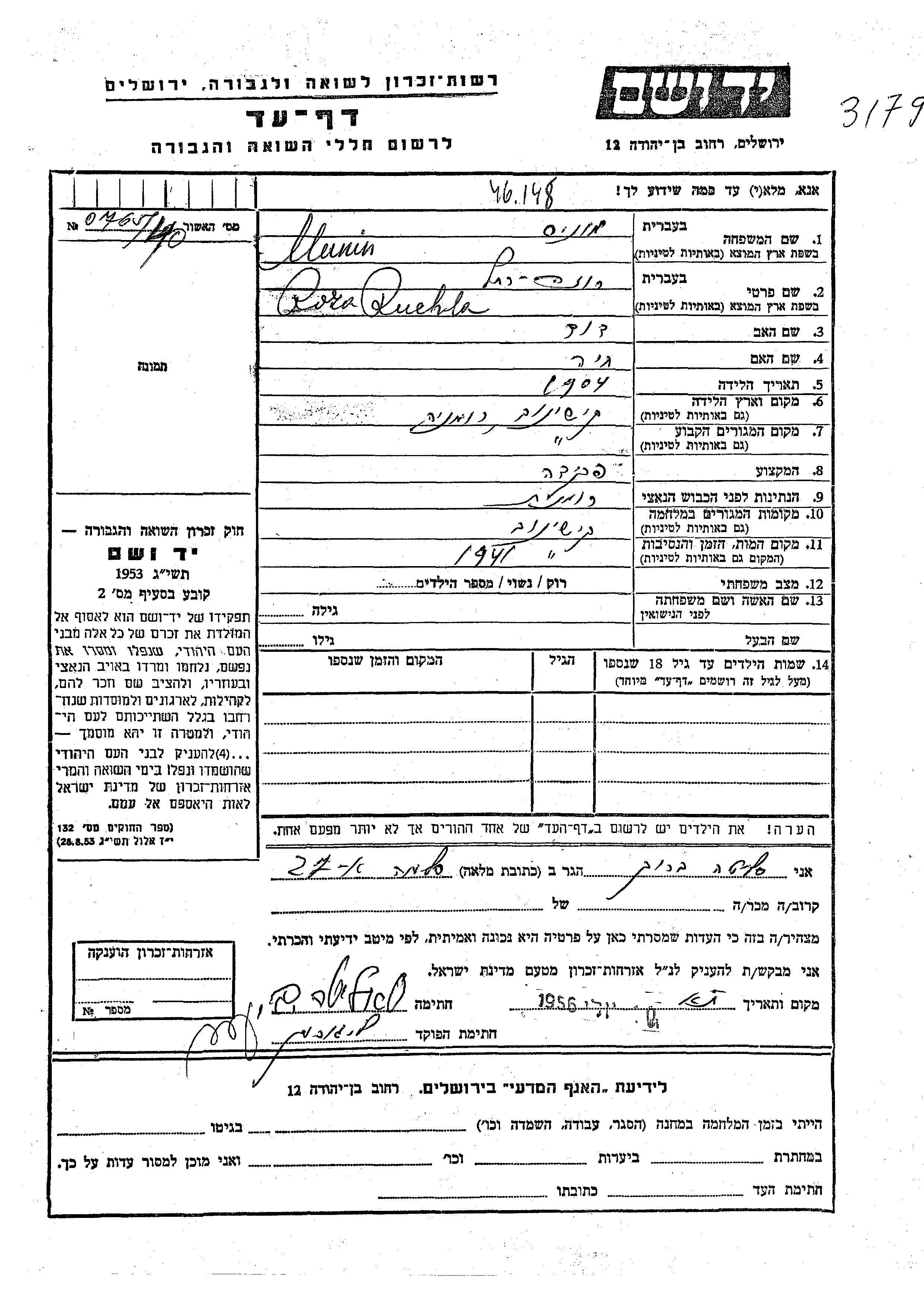 Rachel Roza wurde in der Schoah ermordet. Todesort: Kishinev, Rumänien im Jahr 1941.