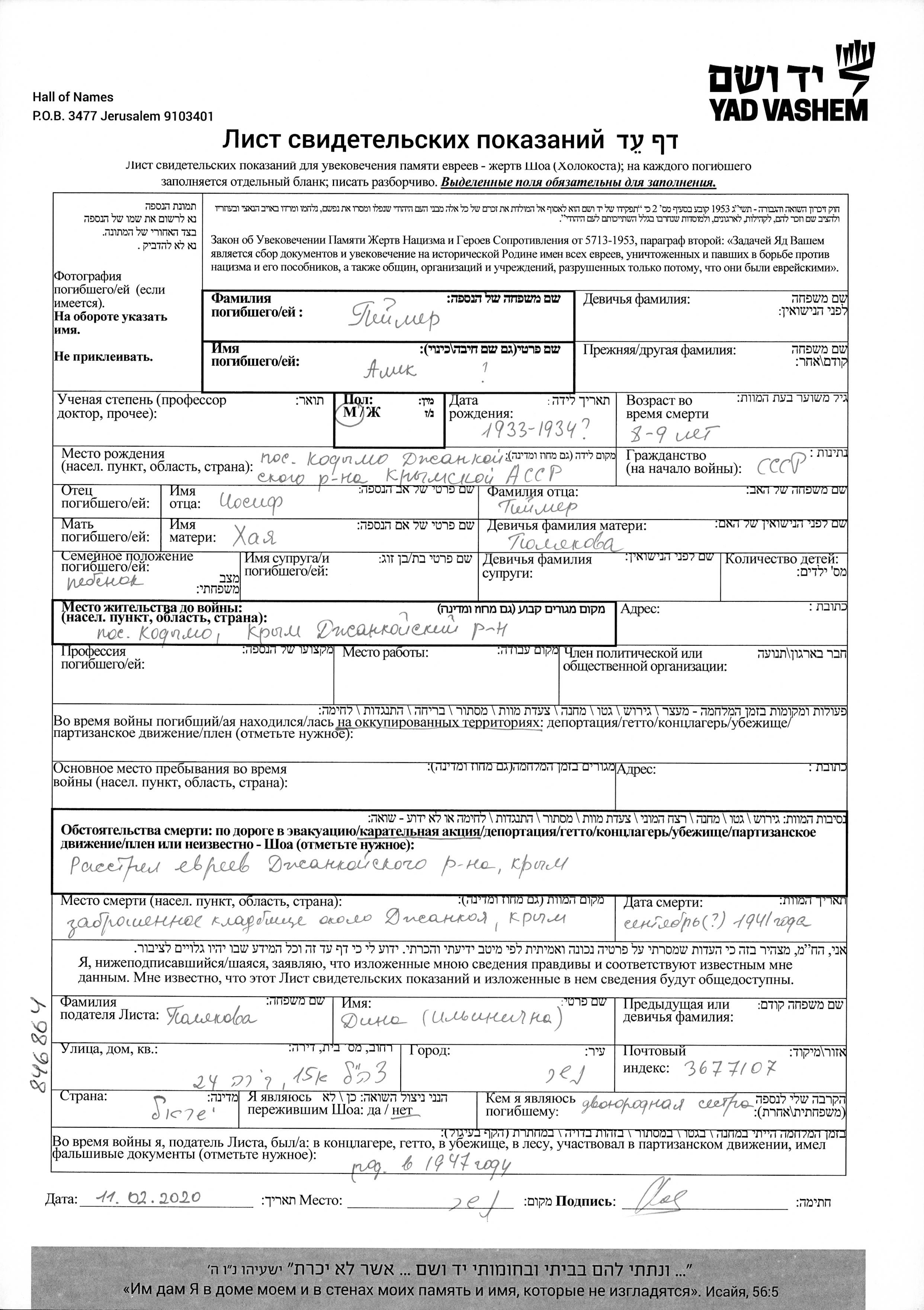 Alik wurde in der Schoah ermordet. Todesort: Dzhankoy, Russland (UdSSR) im Jahr 1941.