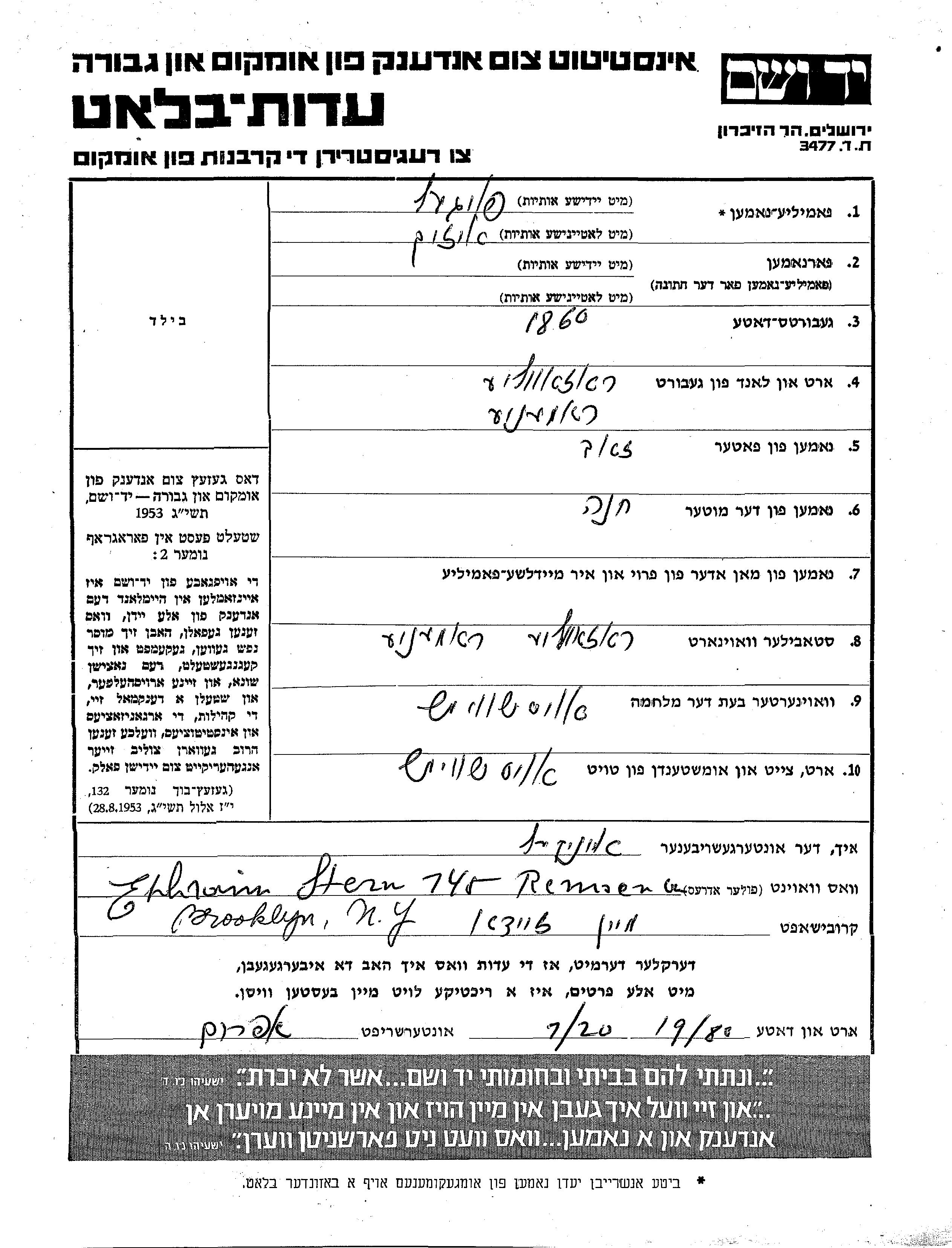 Yad Vashem - Gedenkblätter Sammlung