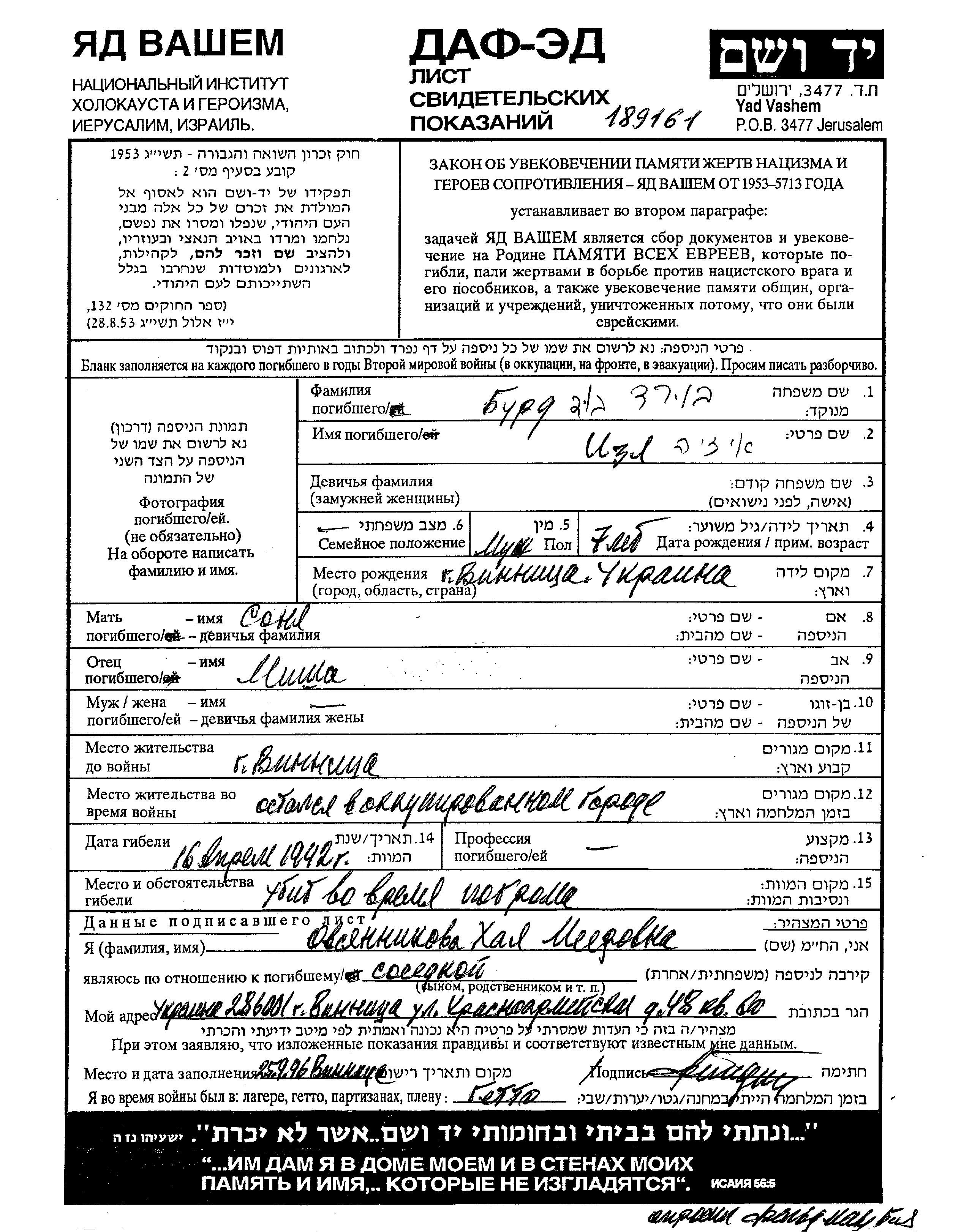 Izya wurde in der Schoah ermordet. Todesort: unbekannt im Jahr 16/04/1942.
