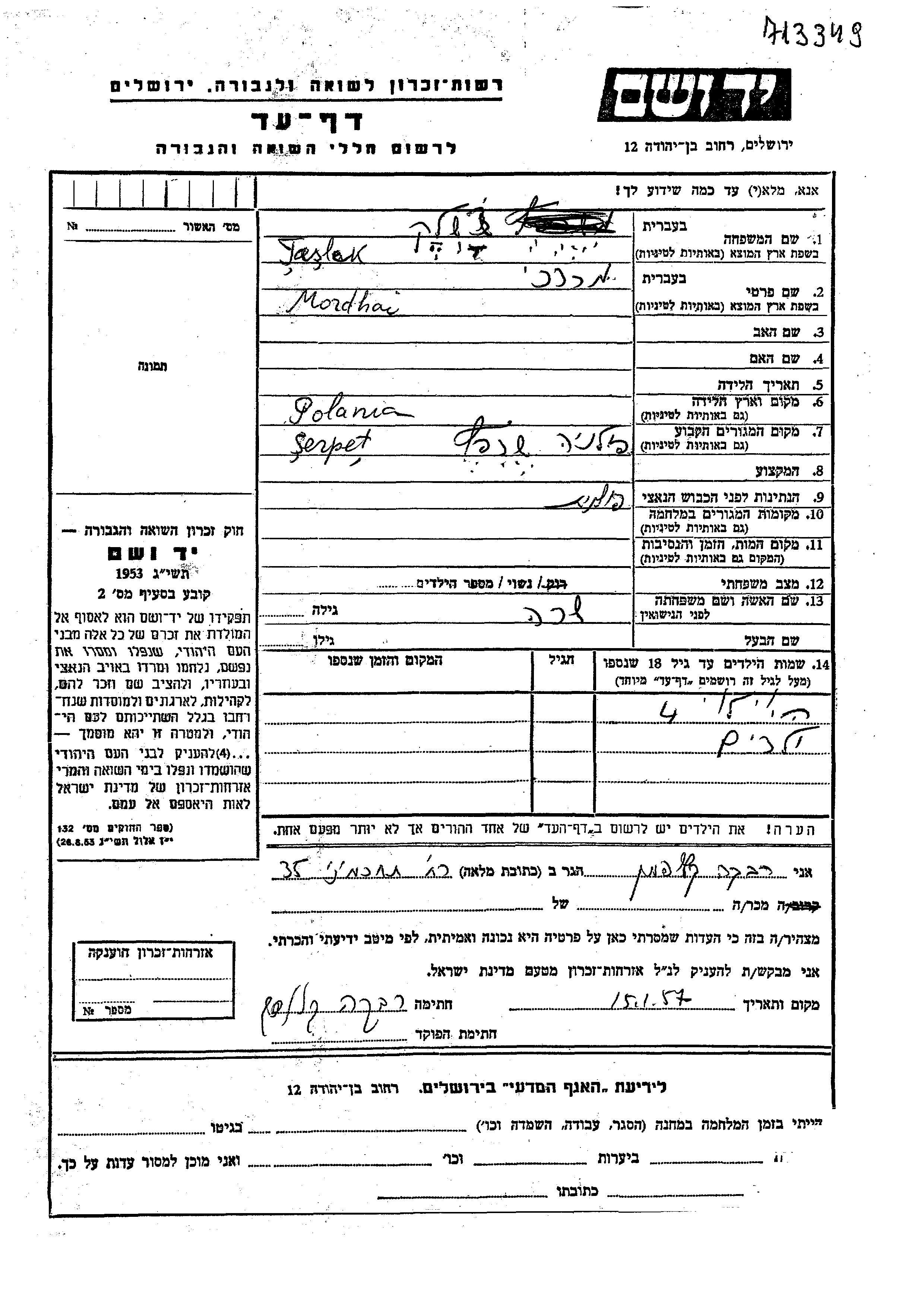 Taslek Cheshlak Mordhai Sierpc, Polen Gedenkblatt