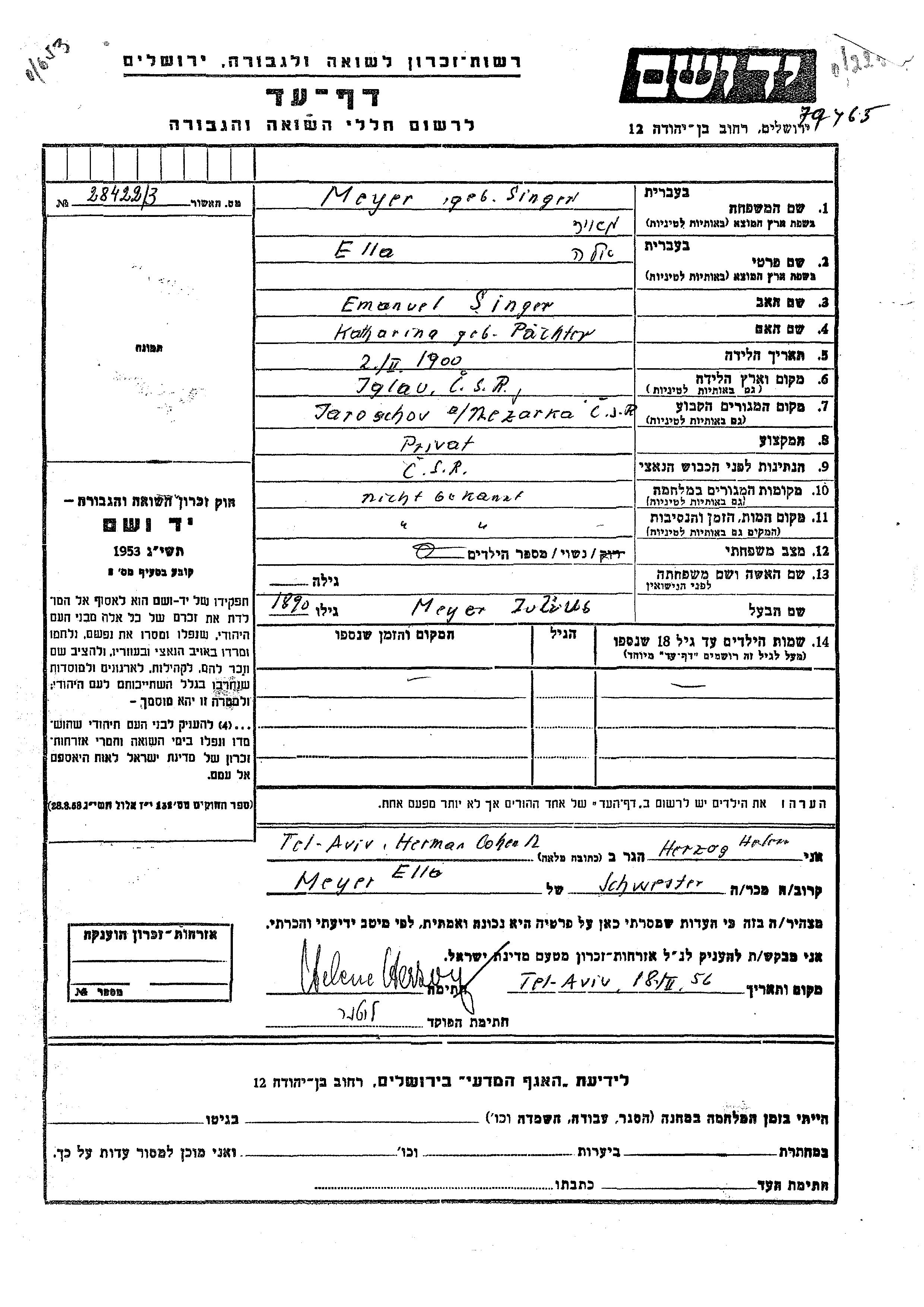Ella Meyer, geb. Singer wurde im Jahr 1900 geboren. Sie war die Tochter von Emanuel und Katarina. Sie war mit Julius Verheiratet.