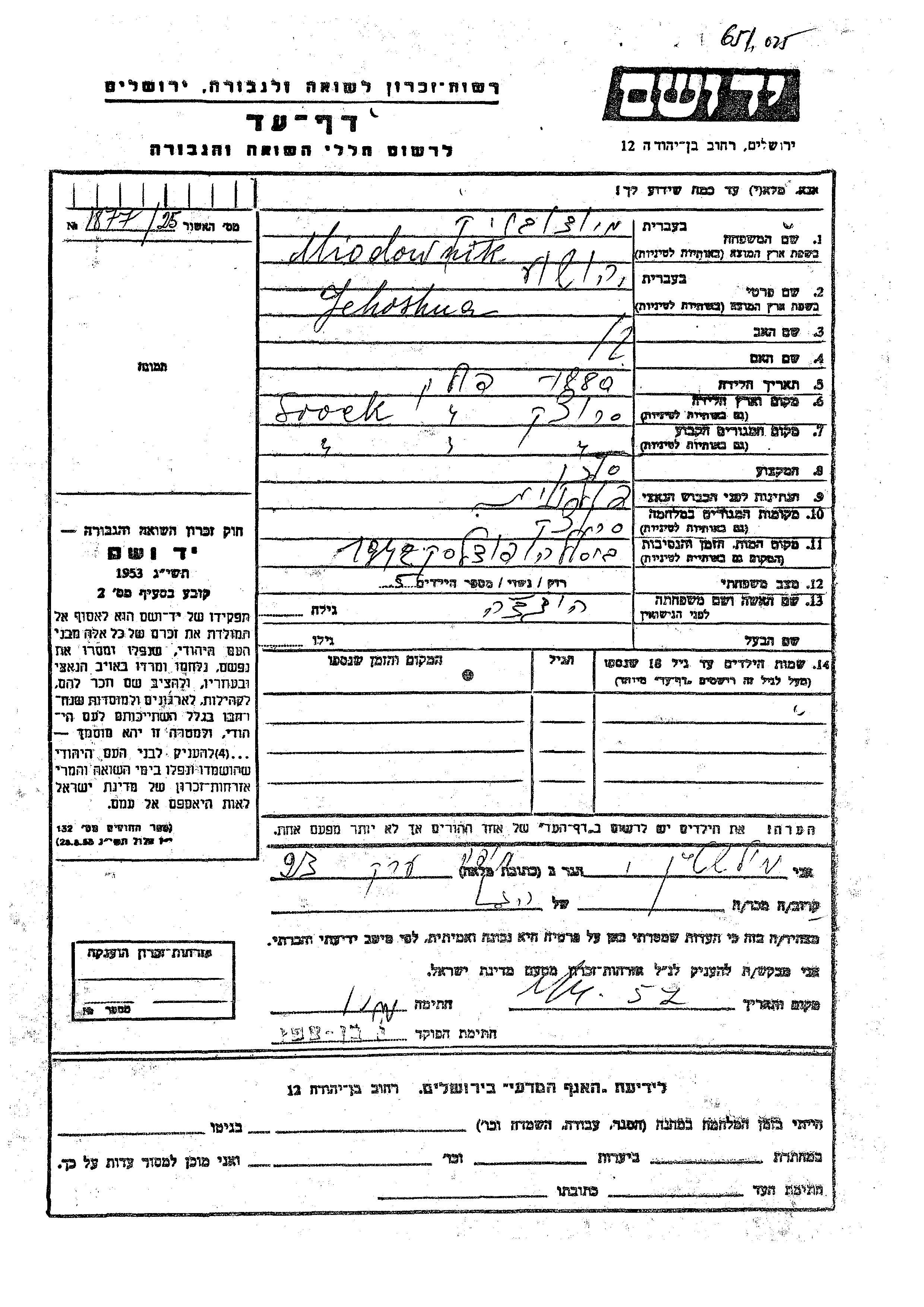 Jehoshua wurde in der Schoah ermordet. Todesort: Biala Podlaska, Polen im Jahr 1942.