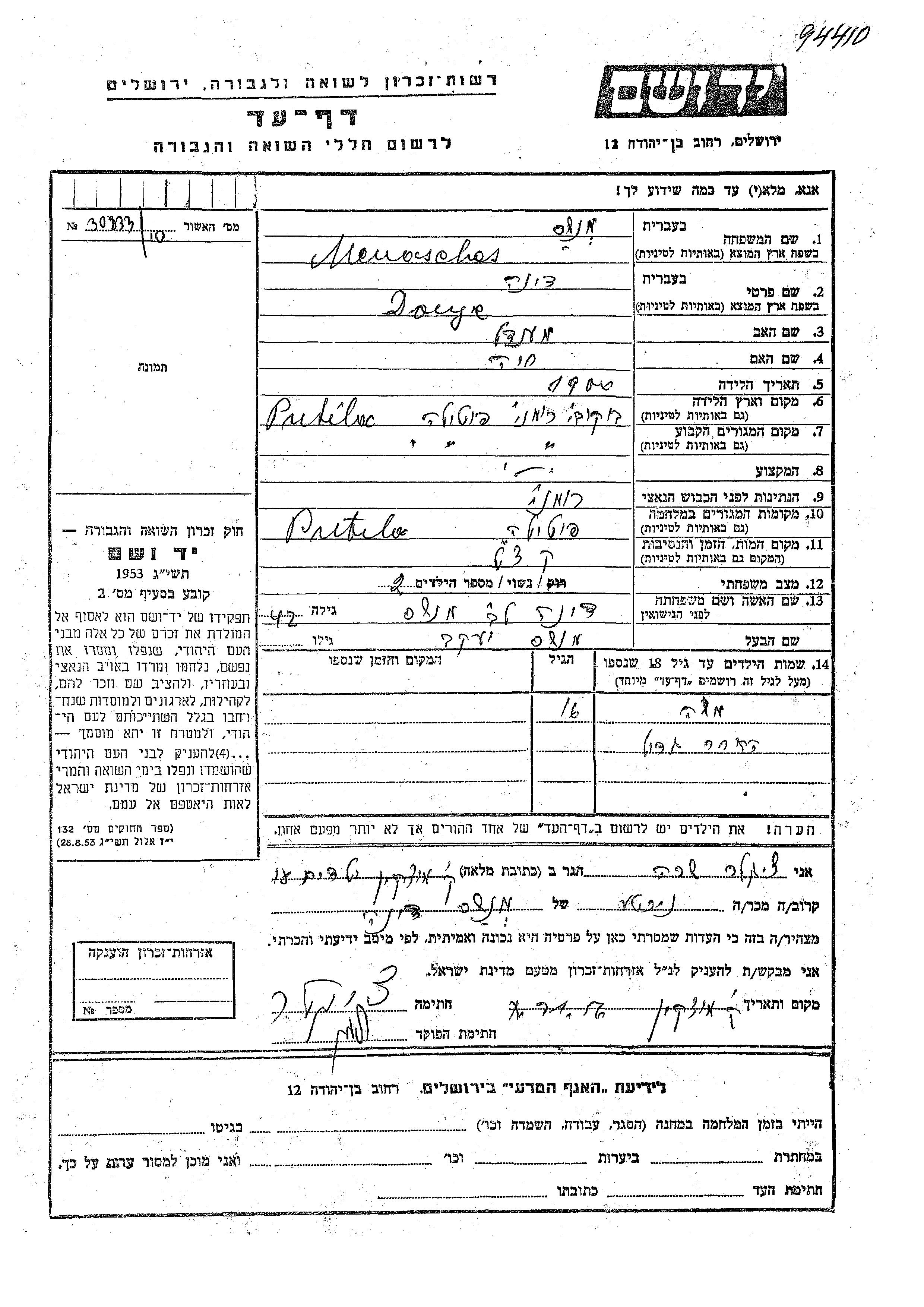 Donja Dina Menasches, geb. Menashes wurde im Jahr 1900 in Putila, Rumänien geboren. Sie war die Tochter von Mendel und Khaia. Sie war mit Yaakov Verheiratet. Vor dem Zweiten Weltkrieg lebte sie in Putila, Rumänien. Während des Krieges war sie in Putila, Rumänien.