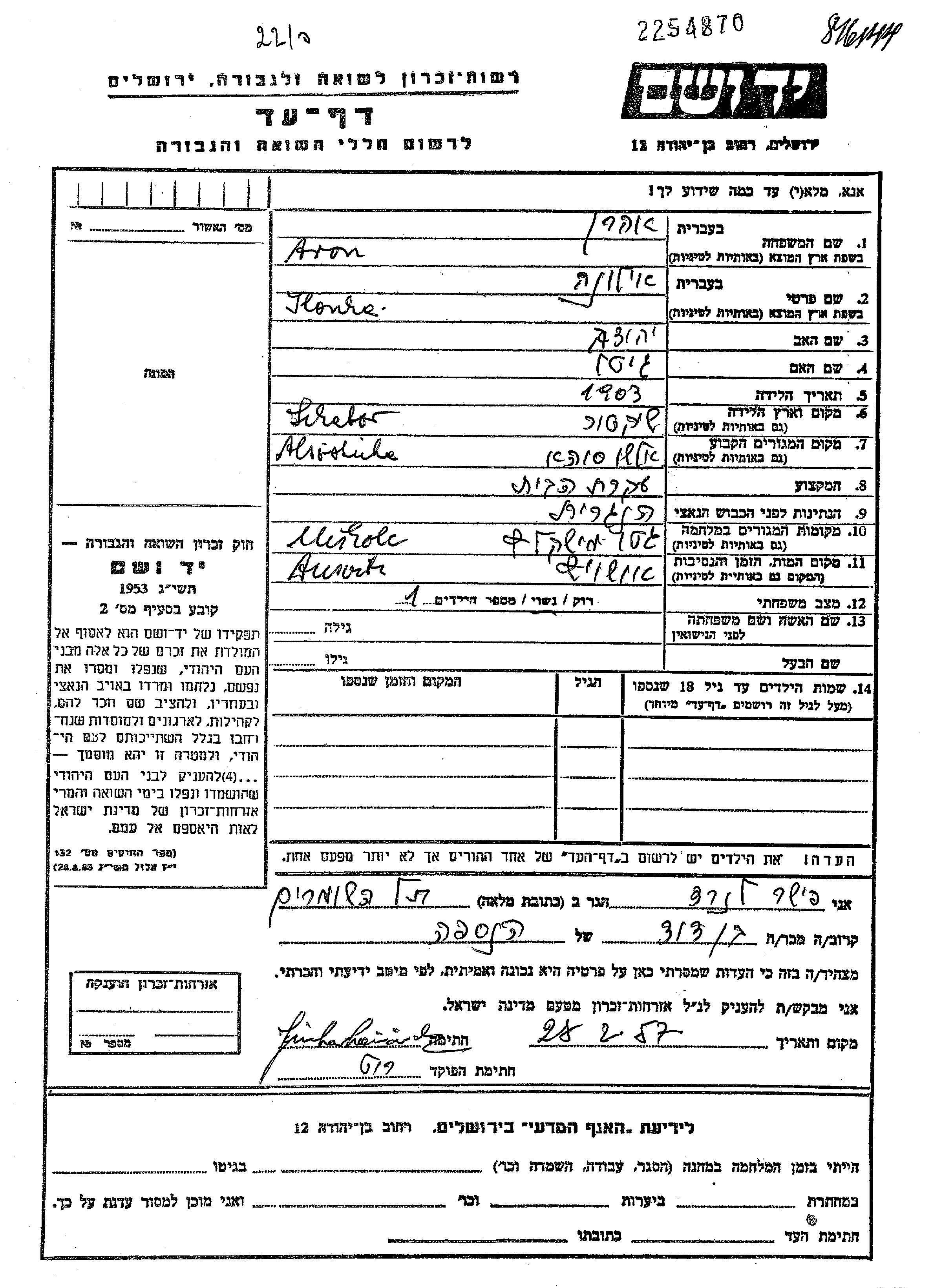 Aron | Ilonka | Miskolc, Ungarn | Verfolgtenliste | |