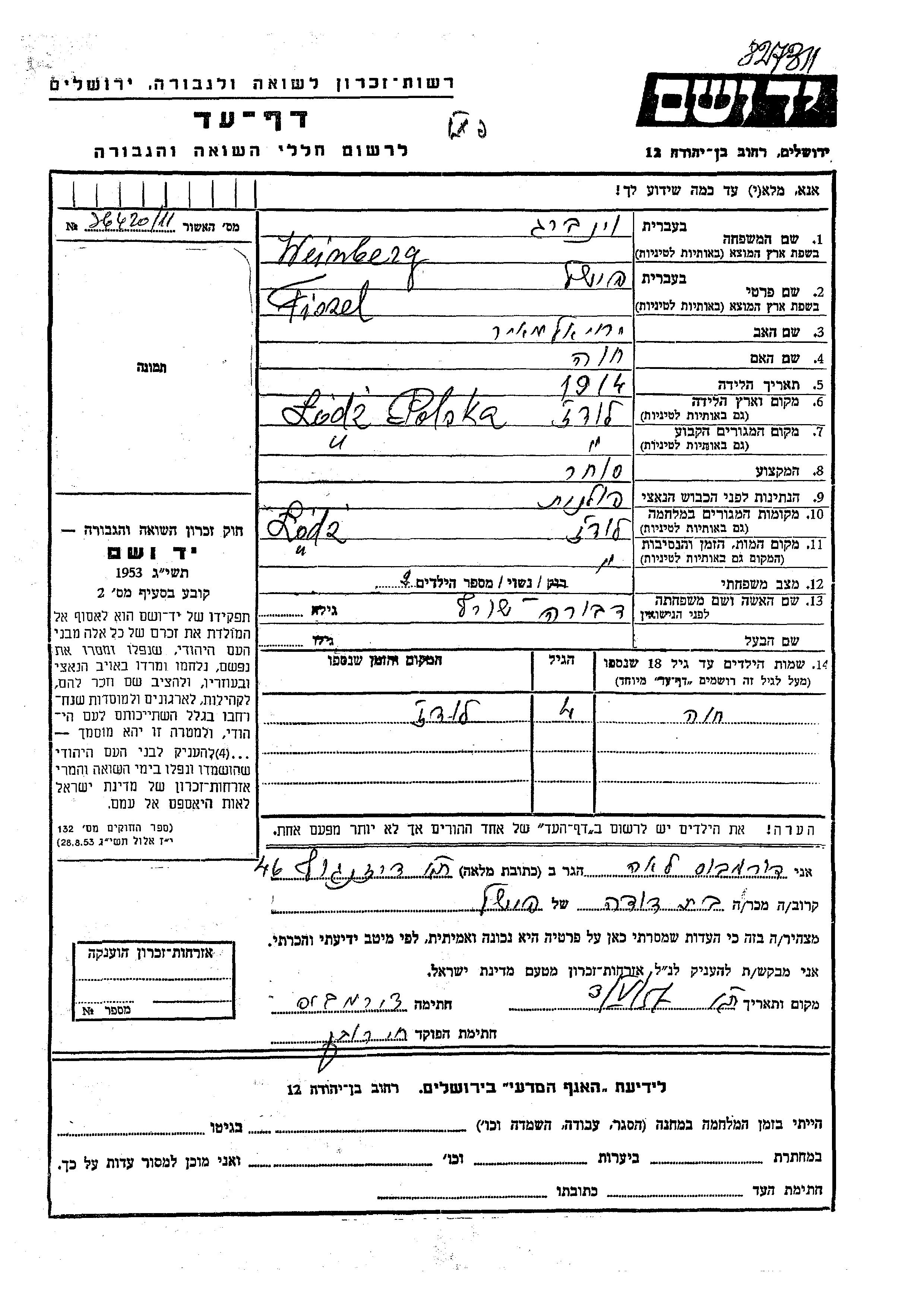 Fiszel Weinberg wurde im Jahr 1914 in Lodz, Polen geboren. Er war der Sohn von Yekhiel Meir und Khava. Er war Kaufmann/-frau und mit Dvora, geb. Shvartz Verheiratet. Vor dem Zweiten Weltkrieg lebte er in Lodz, Polen. Während des Krieges war er in Lodz, Polen.