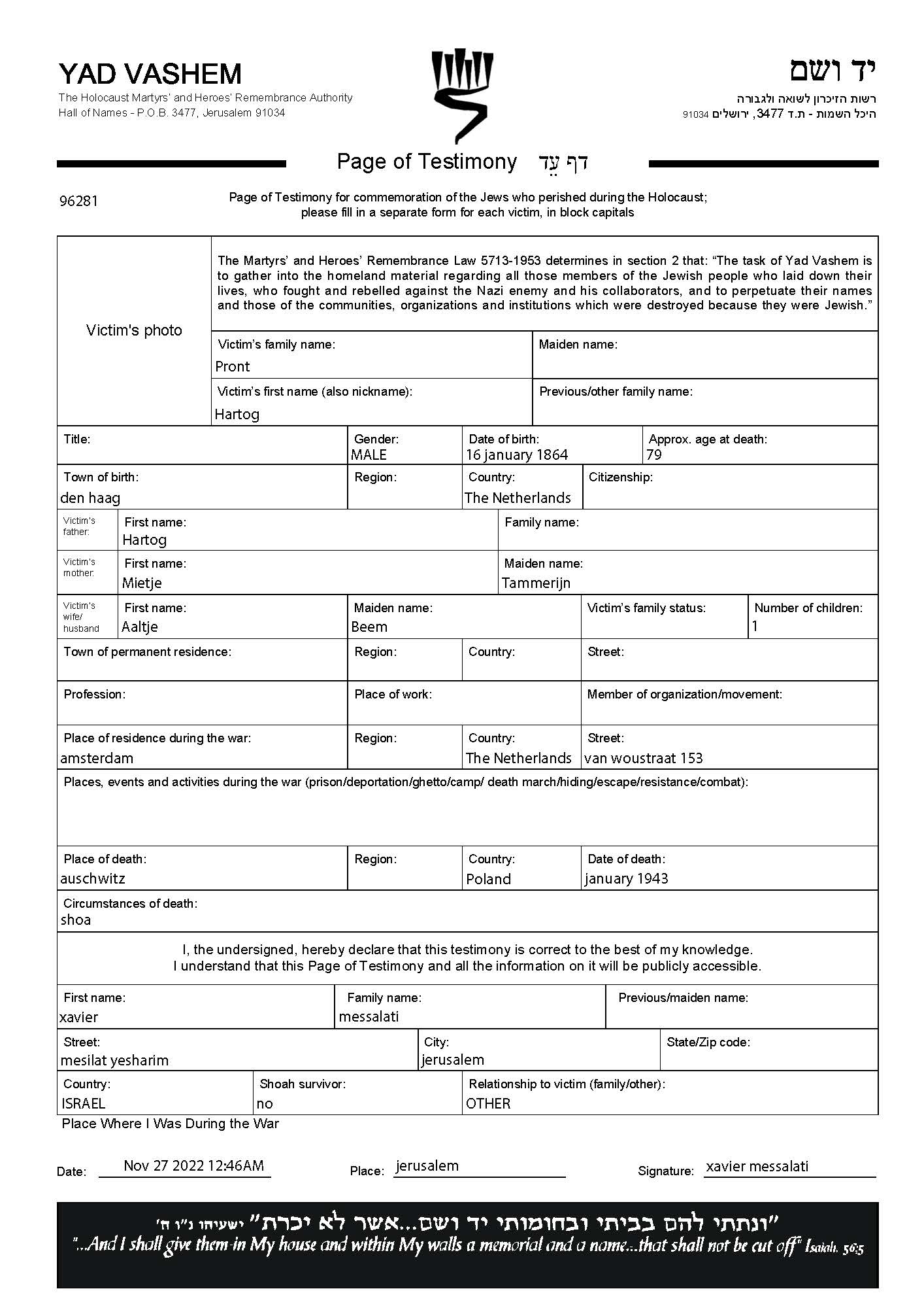 Hertog wurde in der Schoah ermordet. Todesort: Auschwitz, Polen im Jahr 26/01/1943.