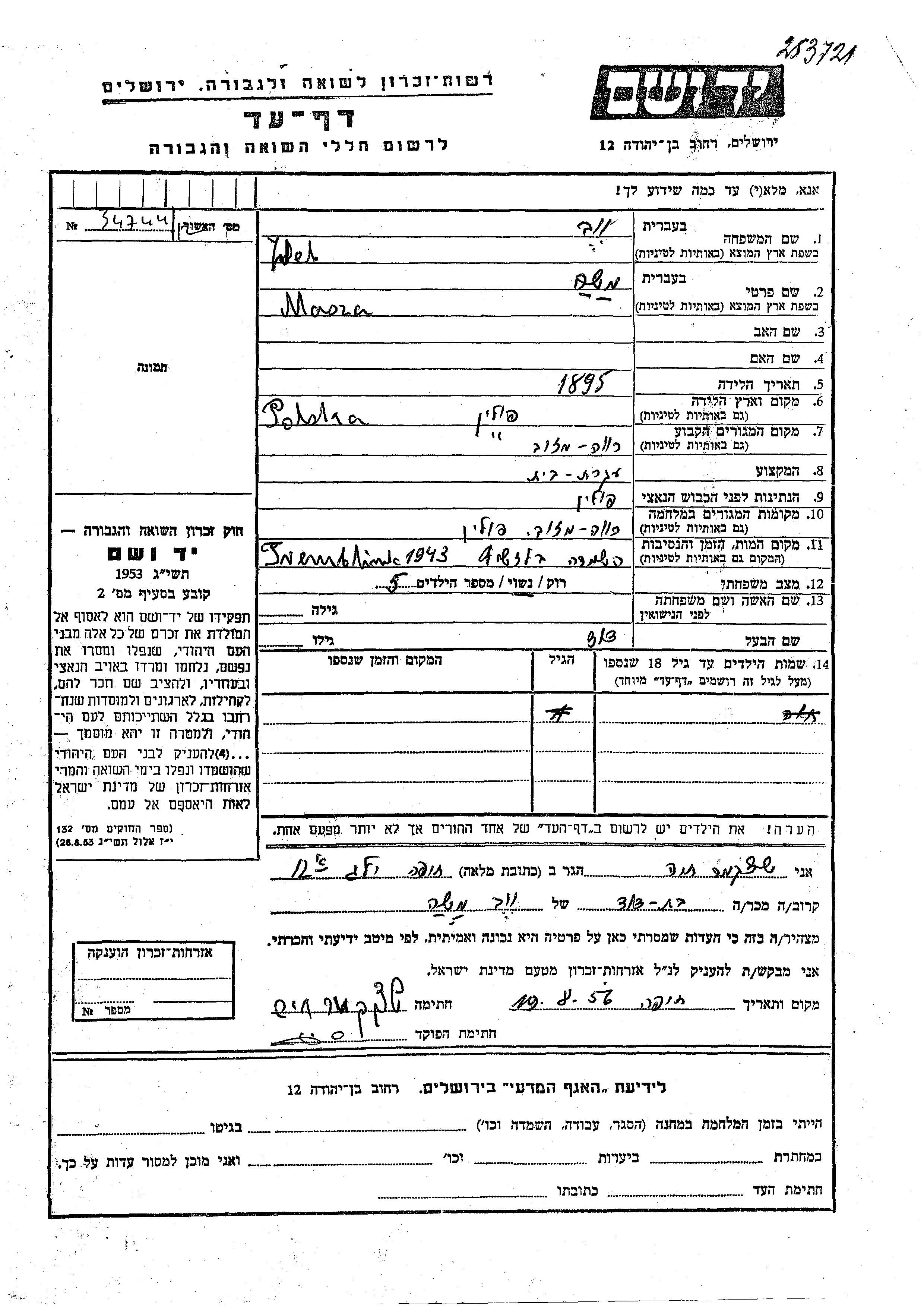 Masza wurde in der Schoah ermordet. Todesort: Belzec, Polen im Jahr 1943.
