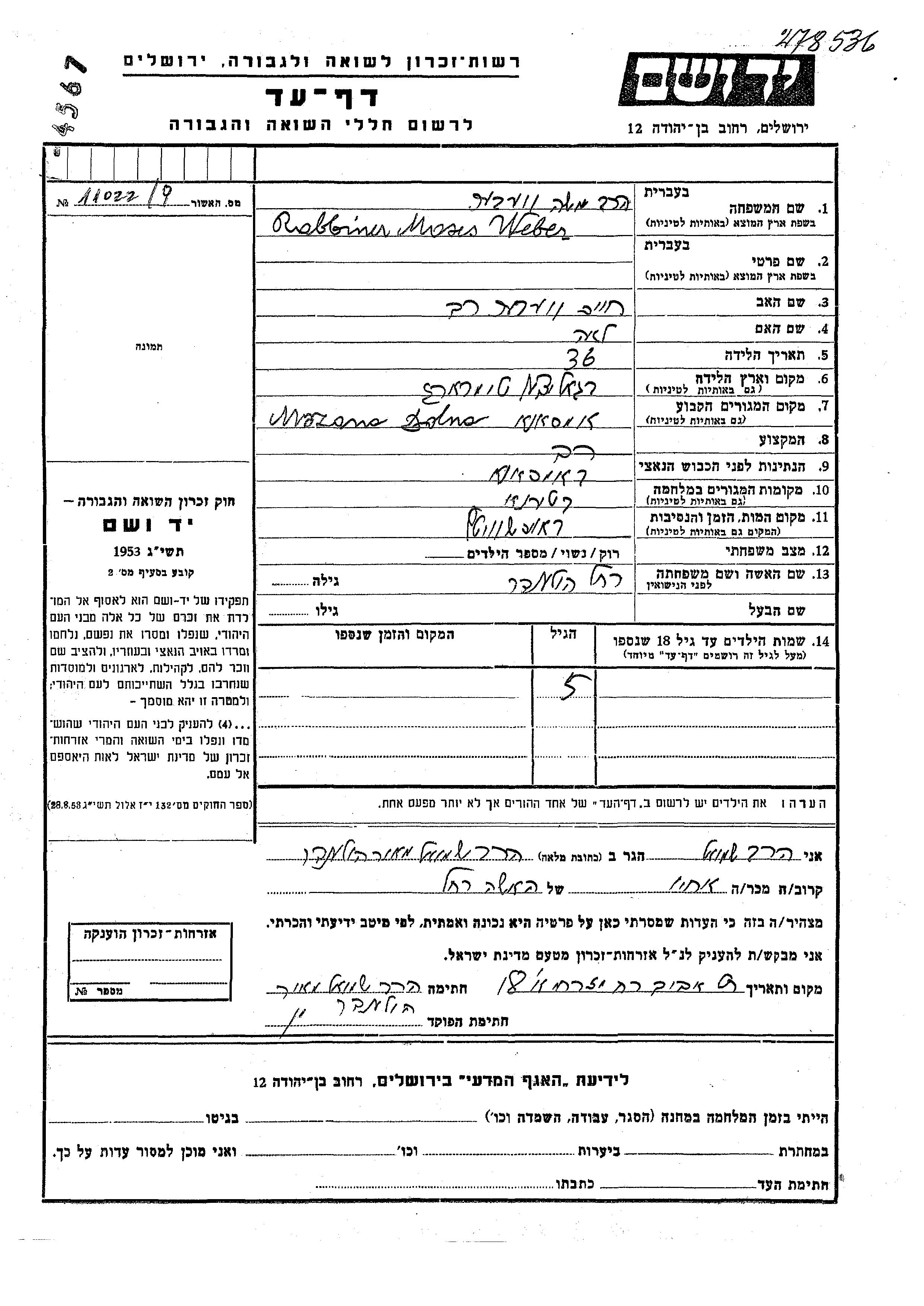 Rabbiner Weber wurde in der Schoah ermordet. Todesort: Auschwitz, Polen.