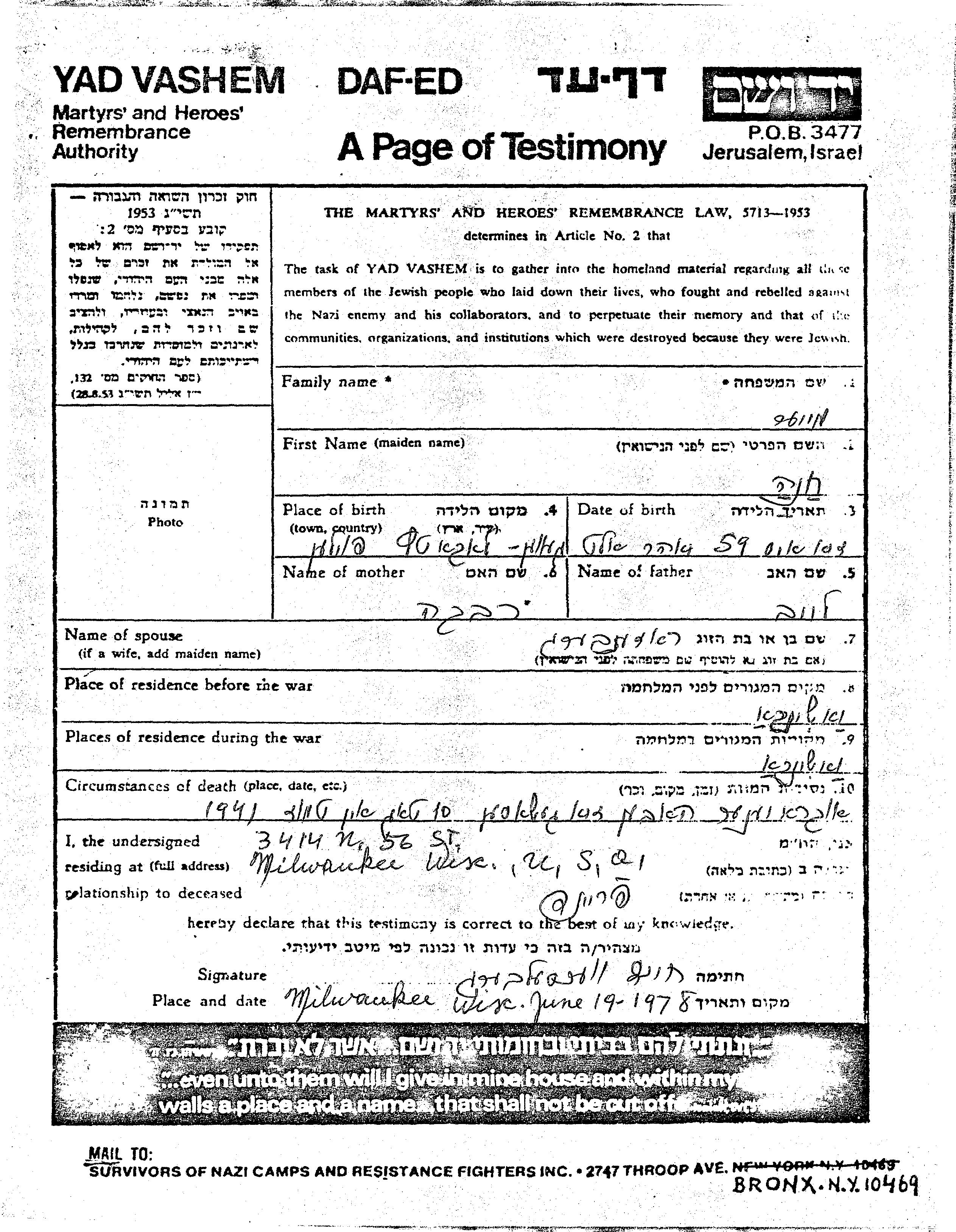 Meier Khana Wiszenka, Polen Gedenkblatt