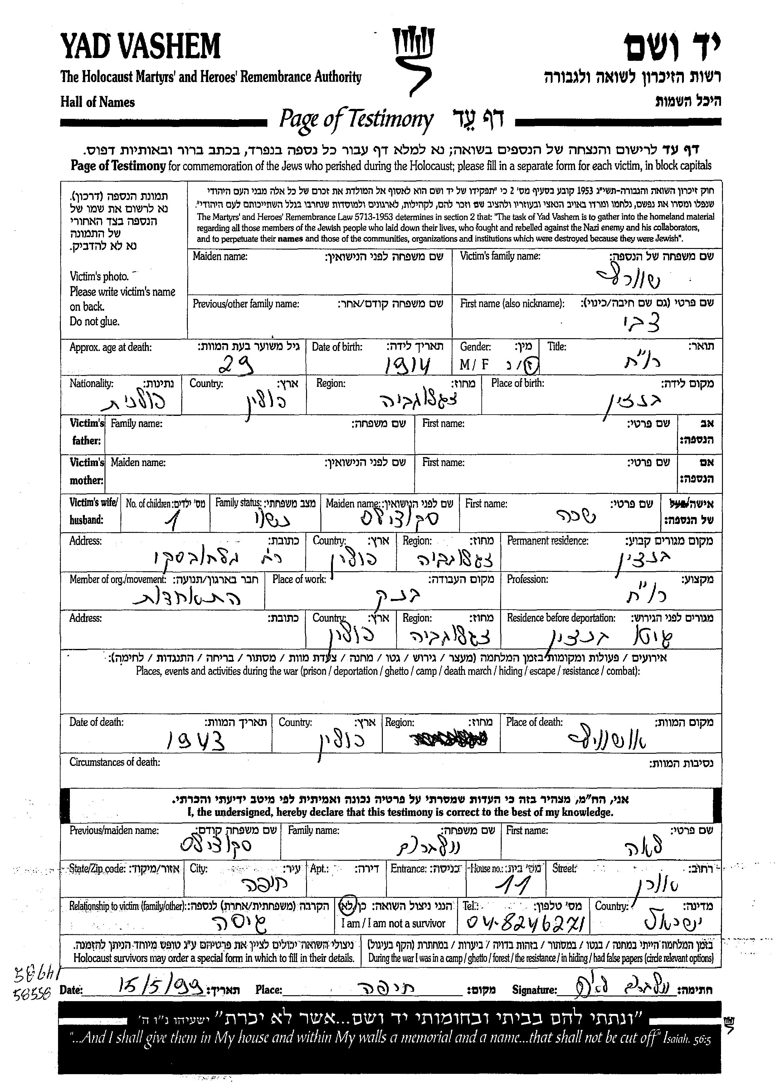 Tzvi wurde in der Schoah ermordet. Todesort: Auschwitz, Polen im Jahr 1943.