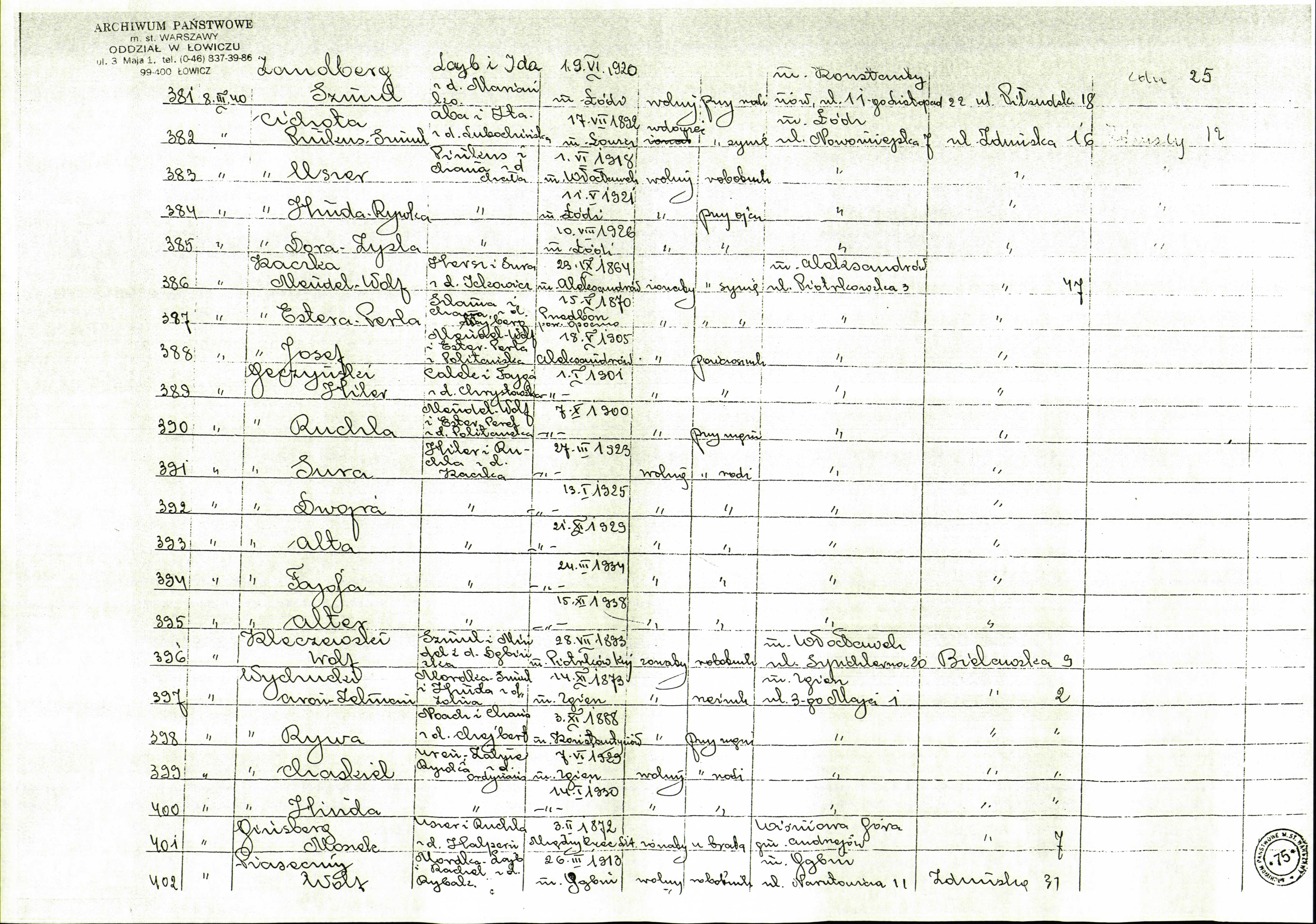 | Wychucka | Rywa | 1888 | Zgierz, Polen | Deportiertenliste |