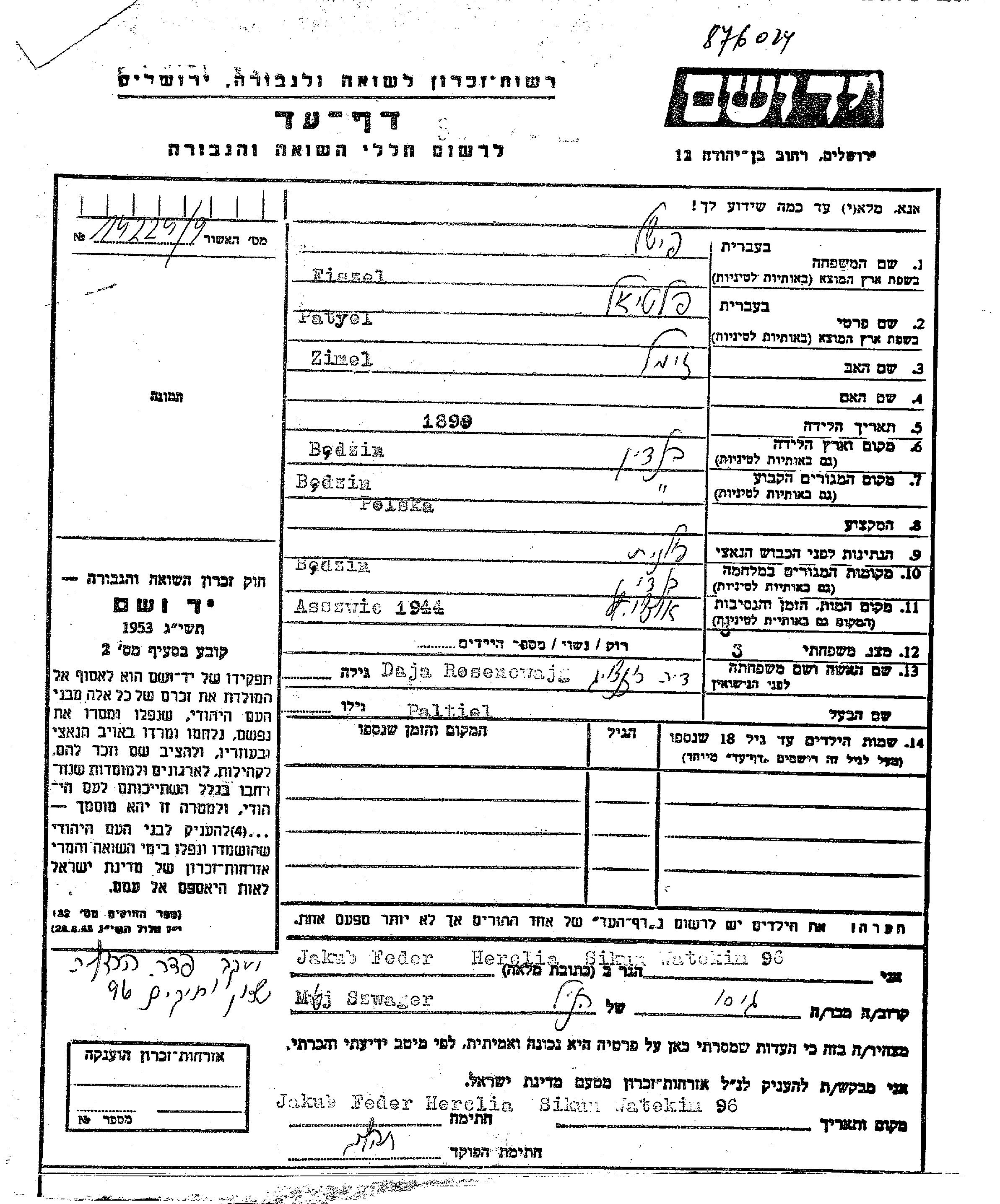 Paltyel wurde in der Schoah ermordet. Todesort: Auschwitz, Polen im Jahr 1944.