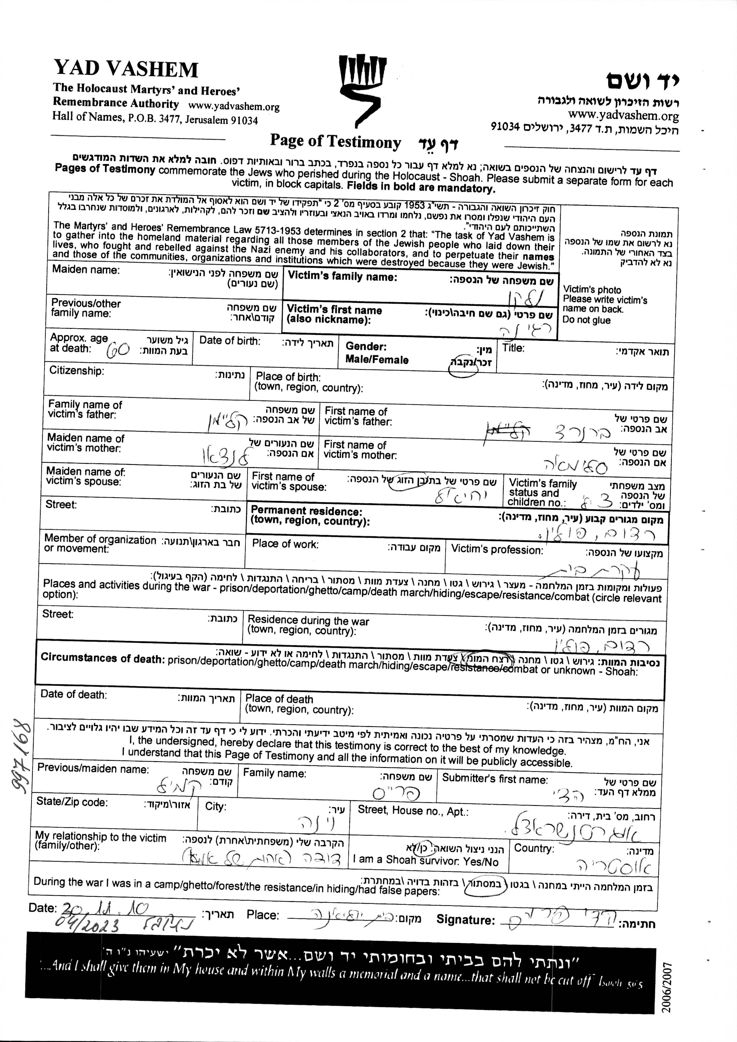 Regina Volken wurde Sie war die Tochter von Bernard und Selimea, geb. Landau. Sie war Hausfrau und mit Yekhiel Verheiratet. Vor dem Zweiten Weltkrieg lebte sie in Radom, Polen. Während des Krieges war sie in Radom, Polen.