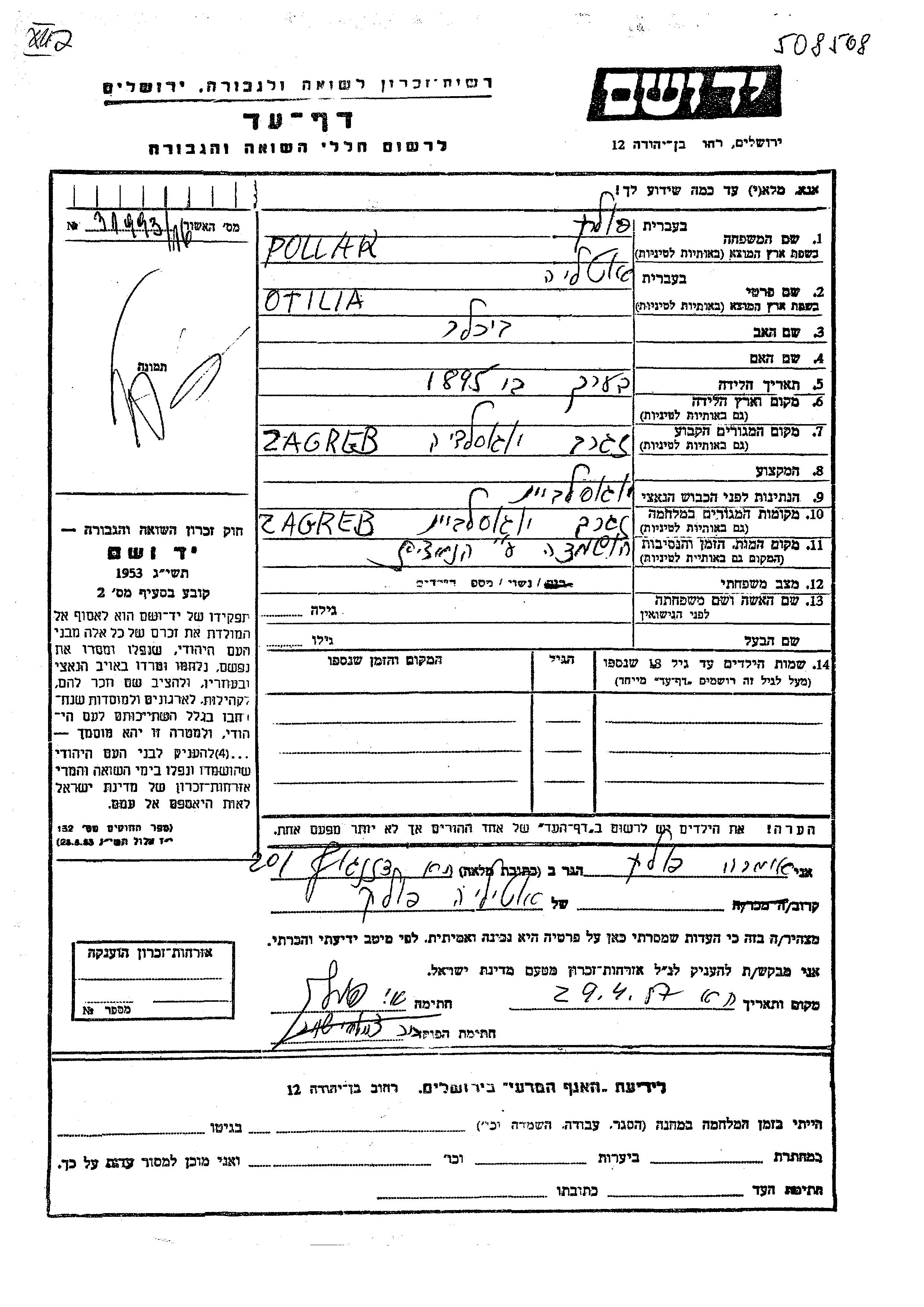 Pollak Ester Otilia 1895 Zagreb, Jugoslawien Gedenkblatt