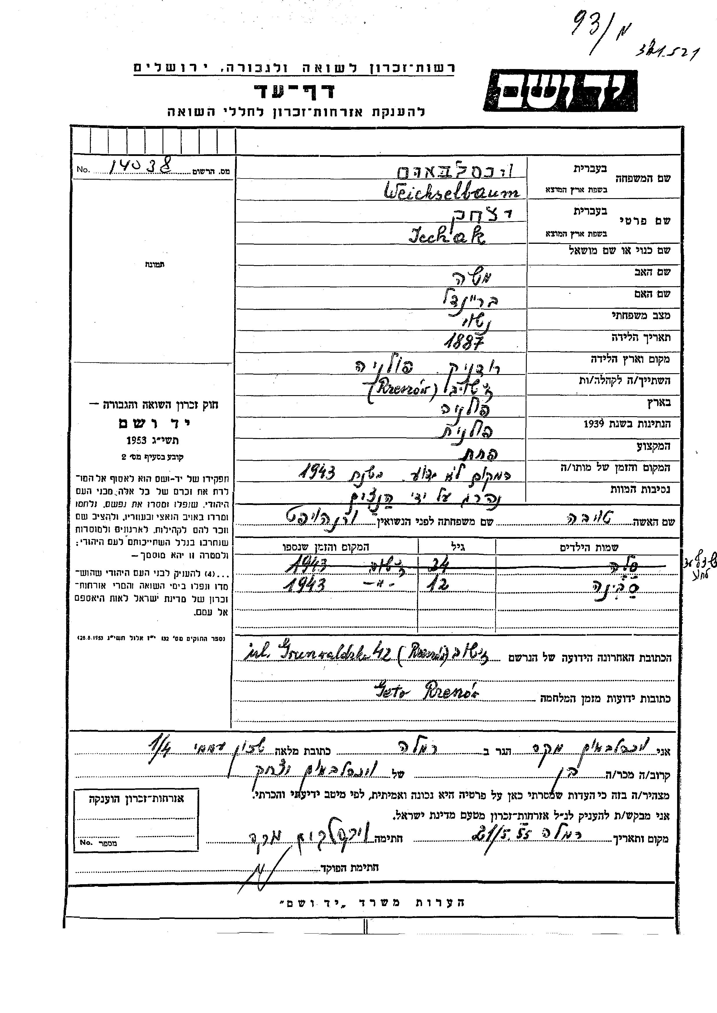 Sala Weichselbaum wurde in unbekannter Ort geboren. Vor dem Zweiten Weltkrieg lebte sie in Polen.
