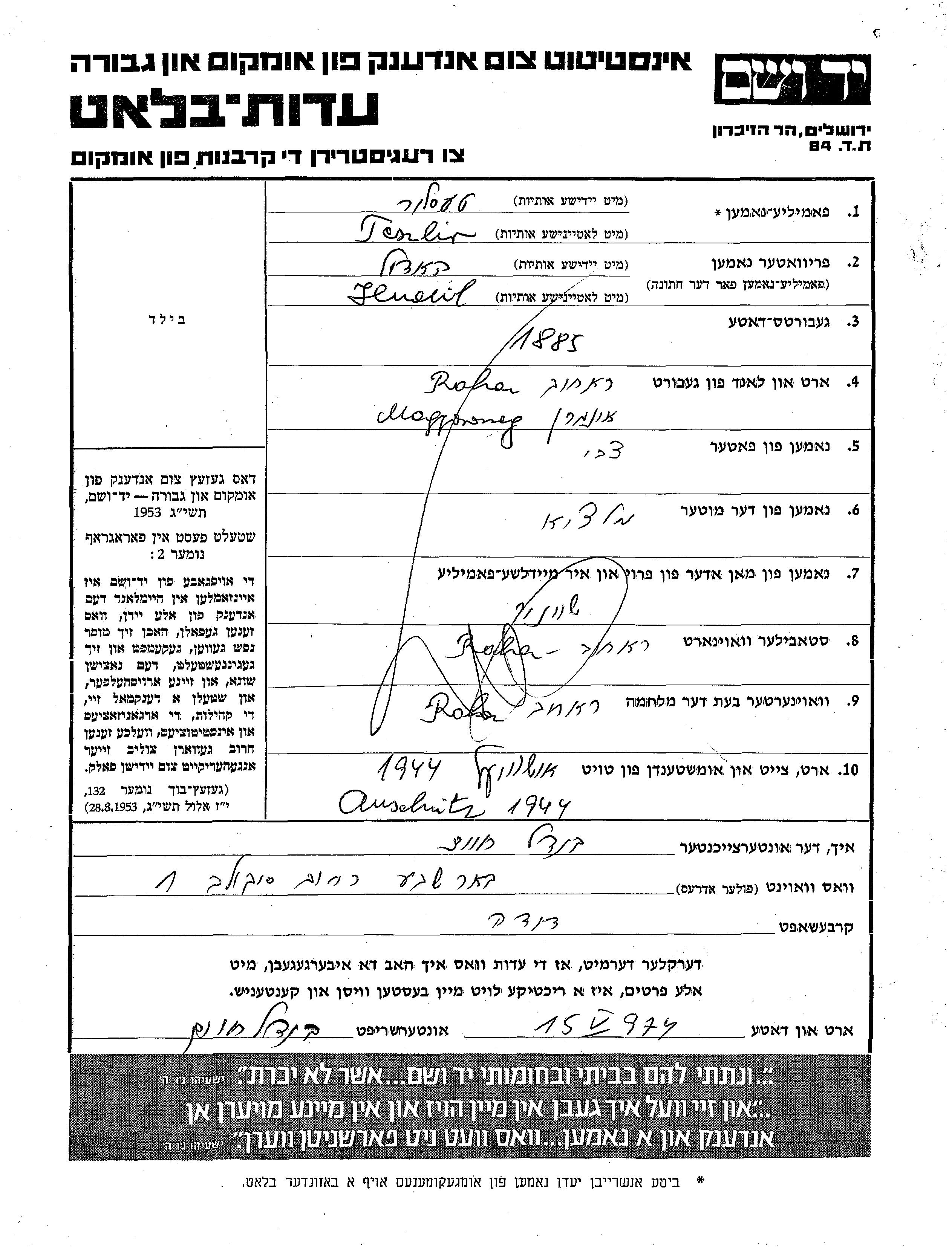 Hudil wurde in der Schoah ermordet. Todesort: Auschwitz, Polen im Jahr 1944.