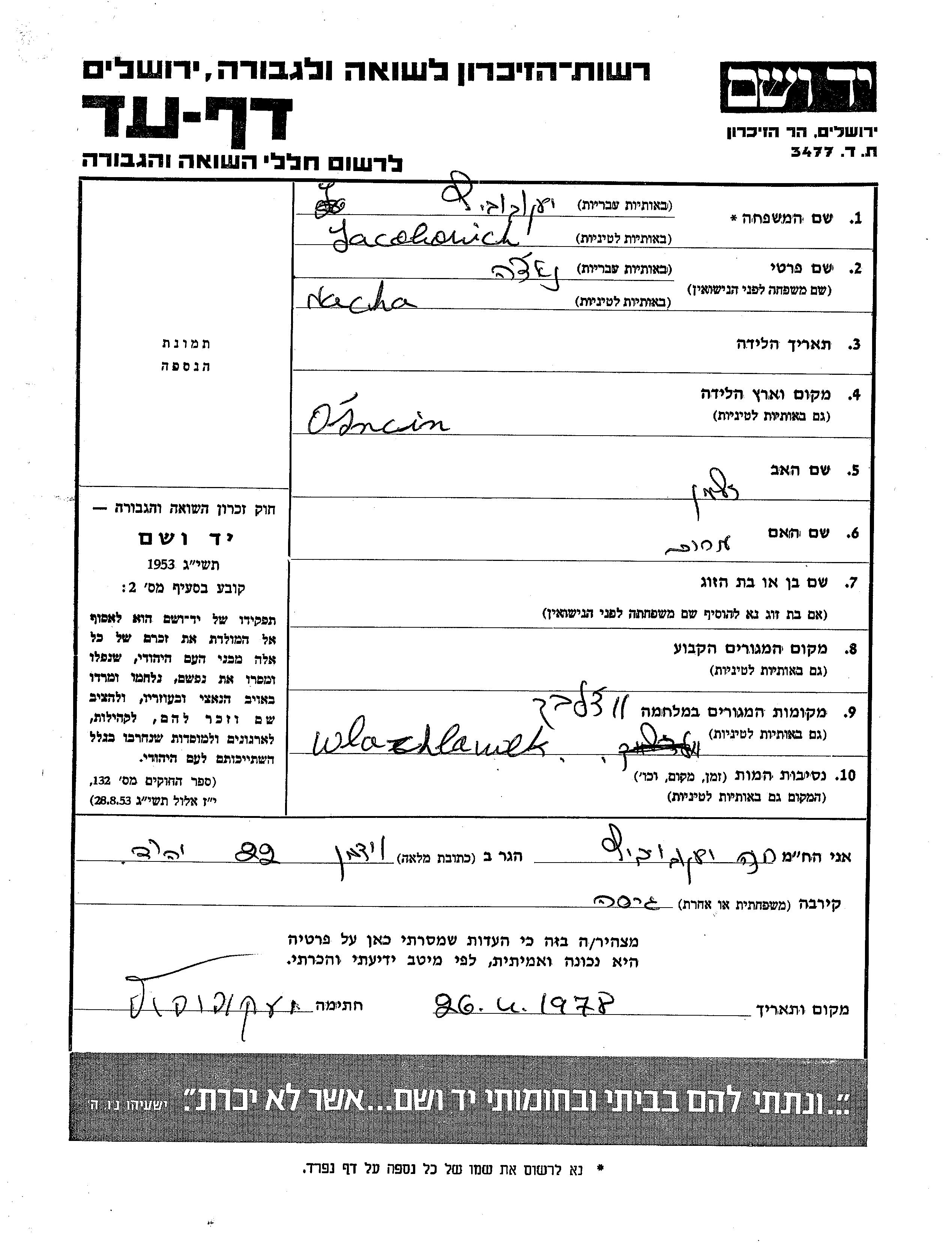 Jacobowich Nacha unbekannter Ort, Gedenkblatt