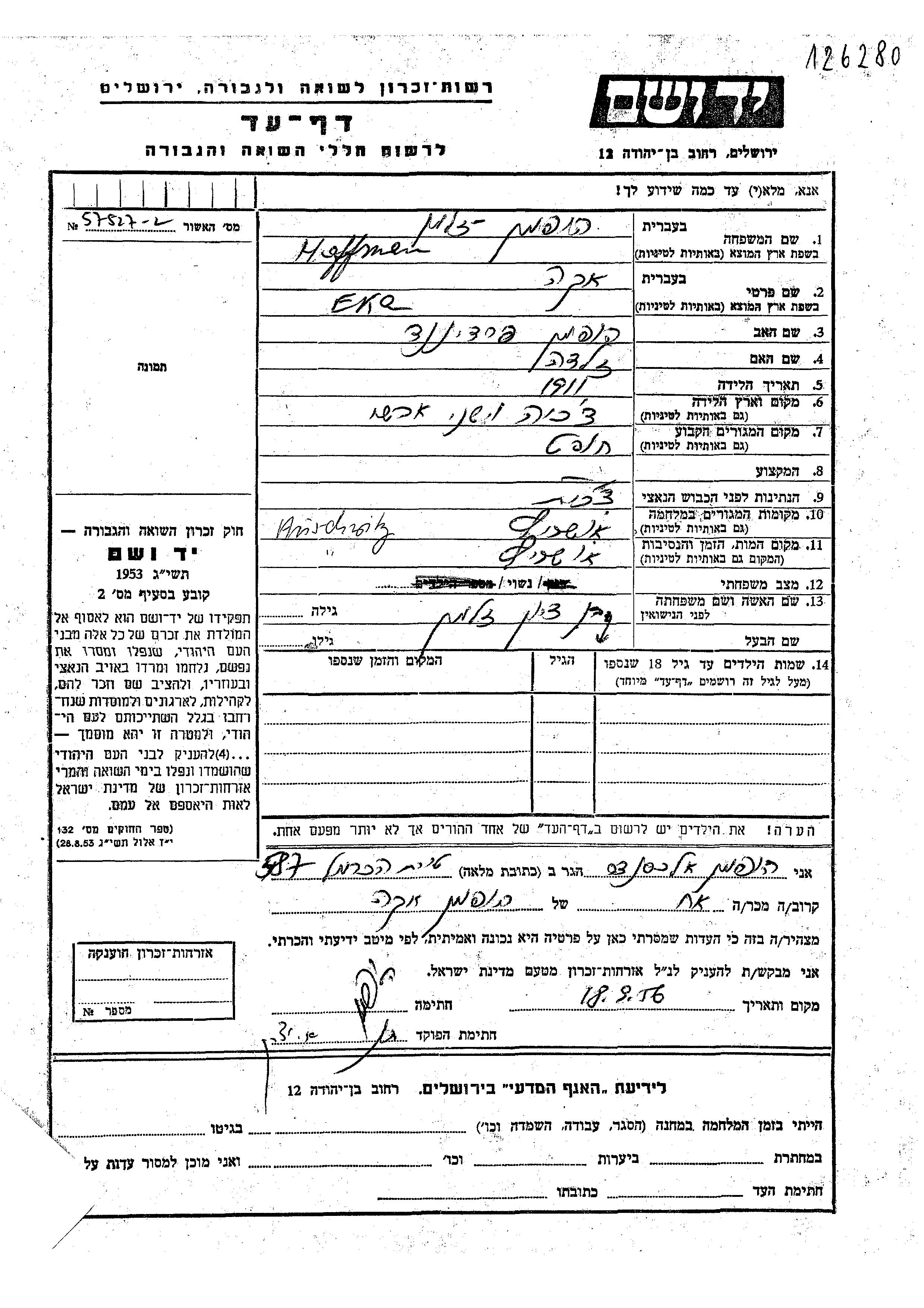 Eka Zalman, geb. Hoffman wurde im Jahr 1911 in Vysni Apsa, Tschechoslowakei geboren. Sie war die Tochter von Ferdinand und Zelda. Sie war mit Bentzion Verheiratet. Vor dem Zweiten Weltkrieg lebte sie in Chust, Tschechoslowakei. Während des Krieges war sie in Oświęcim, Polen.