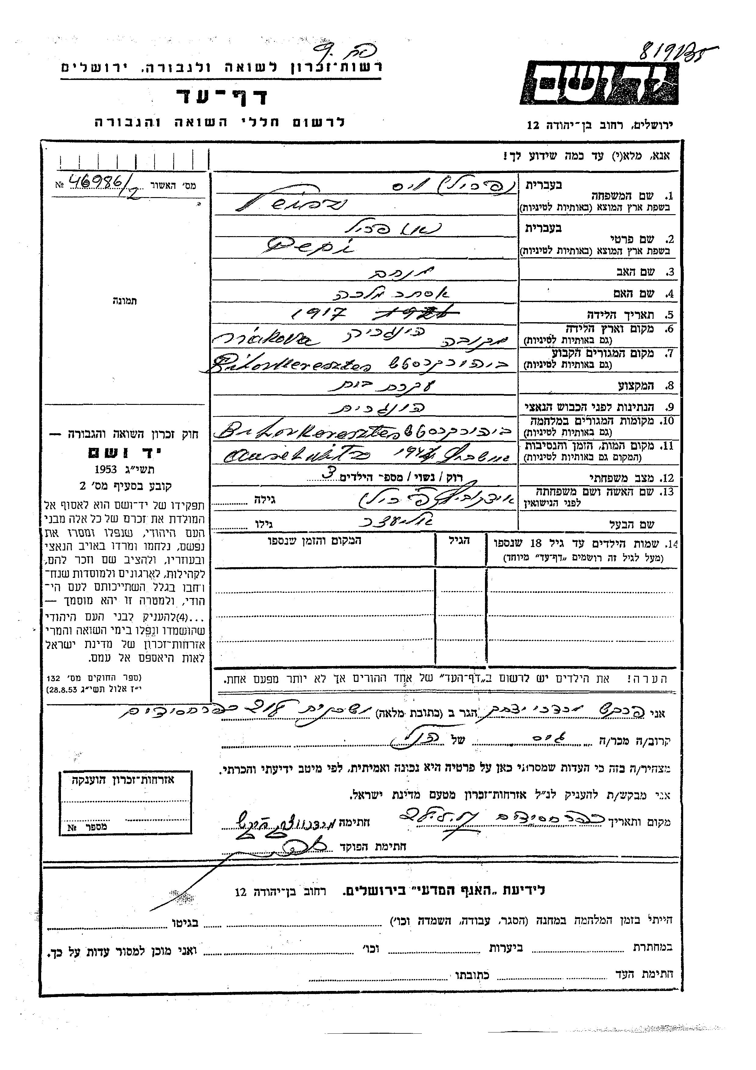 Pepi Peril Veisz, geb. Itzkovitz wurde im Jahr 1917 in Makov, Tschechoslowakei geboren. Sie war die Tochter von Menakhem und Ester Malka. Sie war Hausfrau und mit Eliezer Verheiratet. Vor dem Zweiten Weltkrieg lebte sie in Biharkeresztes, Ungarn. Während des Krieges war sie in Biharkeresztes, Ungarn.