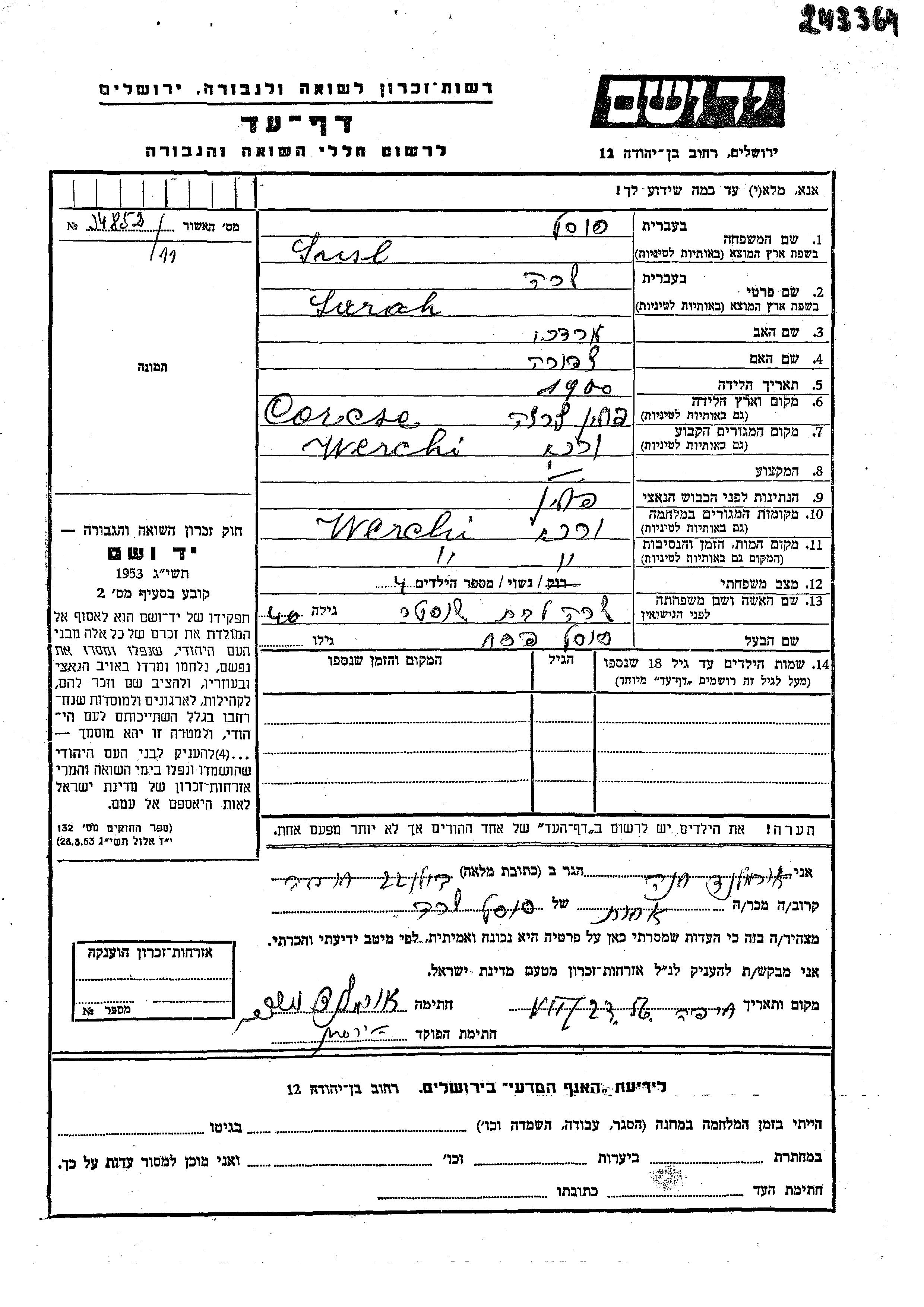 Sarah wurde in der Schoah ermordet. Todesort: Wierchy, Polen.