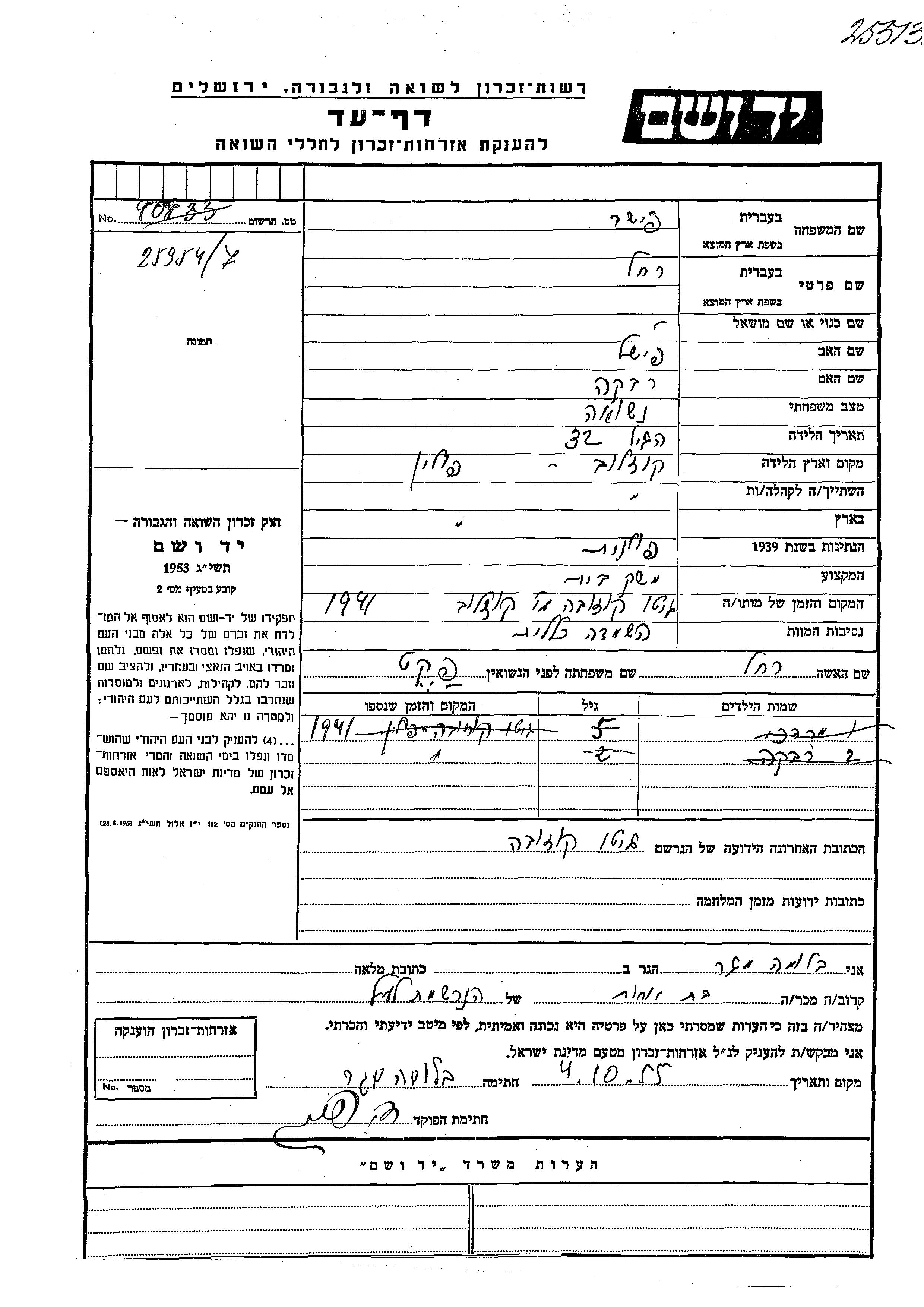 Rakhel wurde in der Schoah ermordet. Todesort: Kozowa, Polen im Jahr 1941.