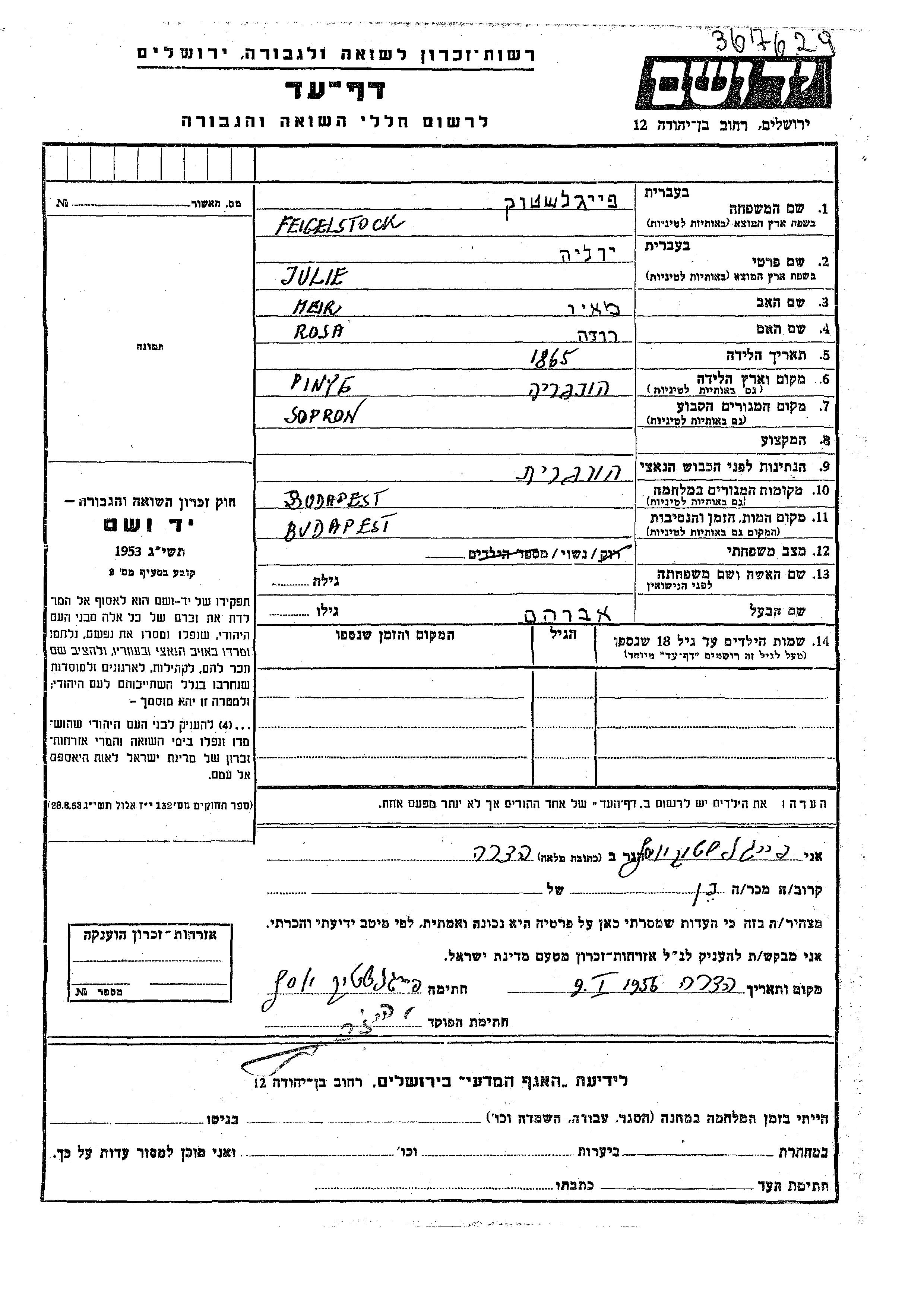 Julie Yulia wurde in der Schoah ermordet. Todesort: Budapest, Ungarn.