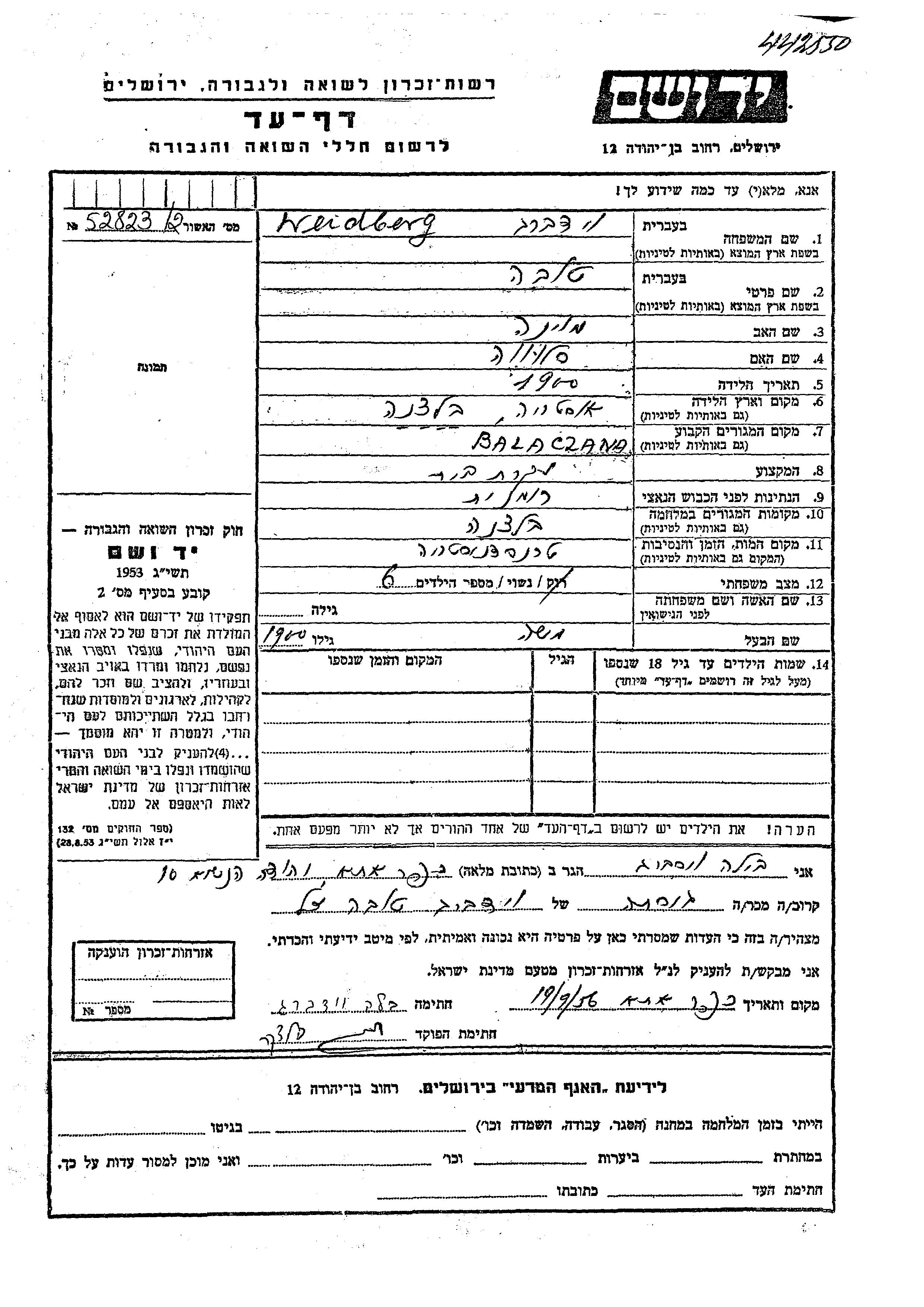 Tova Weidberg wurde im Jahr 1900 in Balaceana, Rumänien geboren. Sie war die Tochter von Moina. Sie war Hausfrau und mit Moshe Verheiratet. Vor dem Zweiten Weltkrieg lebte sie in Balaceana, Rumänien. Während des Krieges war sie in Balaceana, Rumänien.