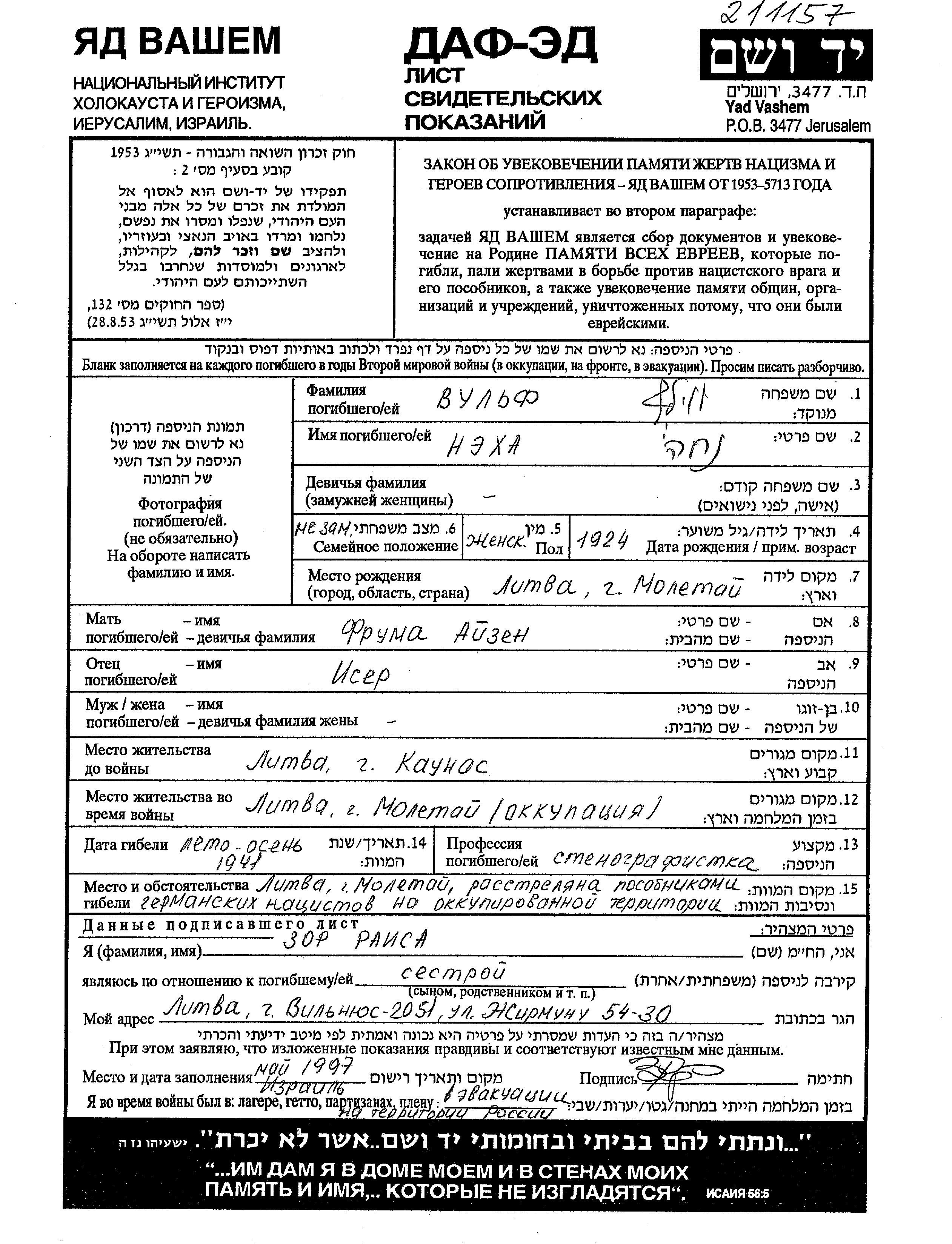 Nekhe wurde in der Schoah ermordet. Todesort: Maletai, Litauen im Jahr 1941.