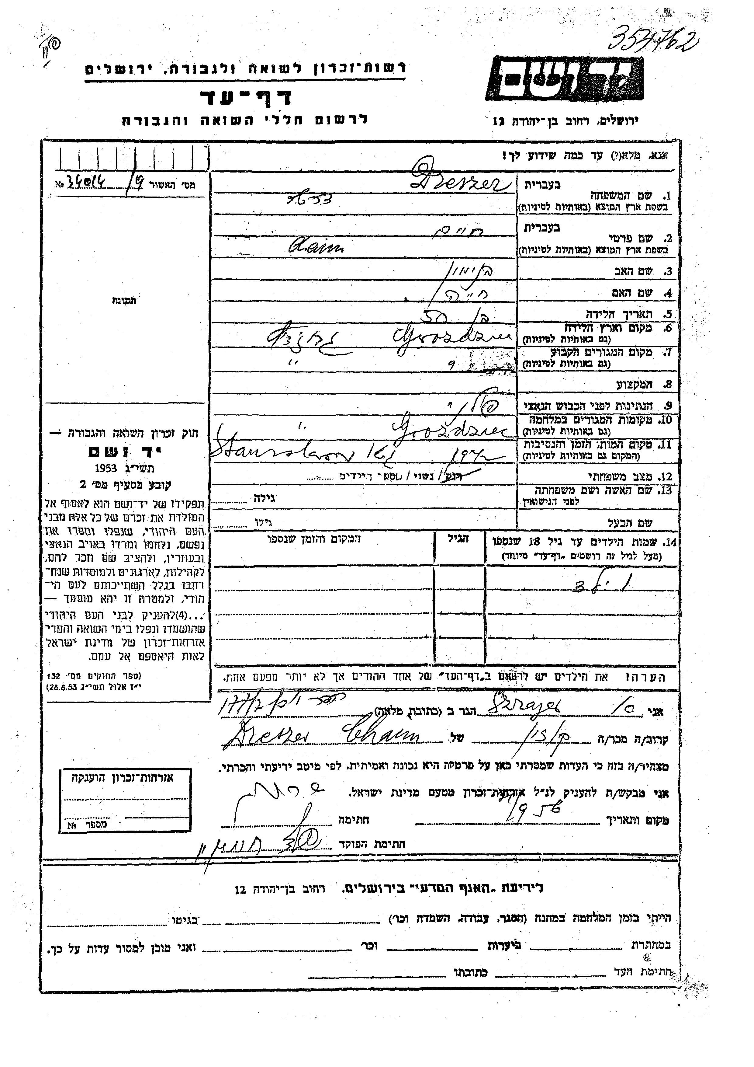 Chaim wurde in der Schoah ermordet. Todesort: Gwozdziec, Polen im Jahr 1942.