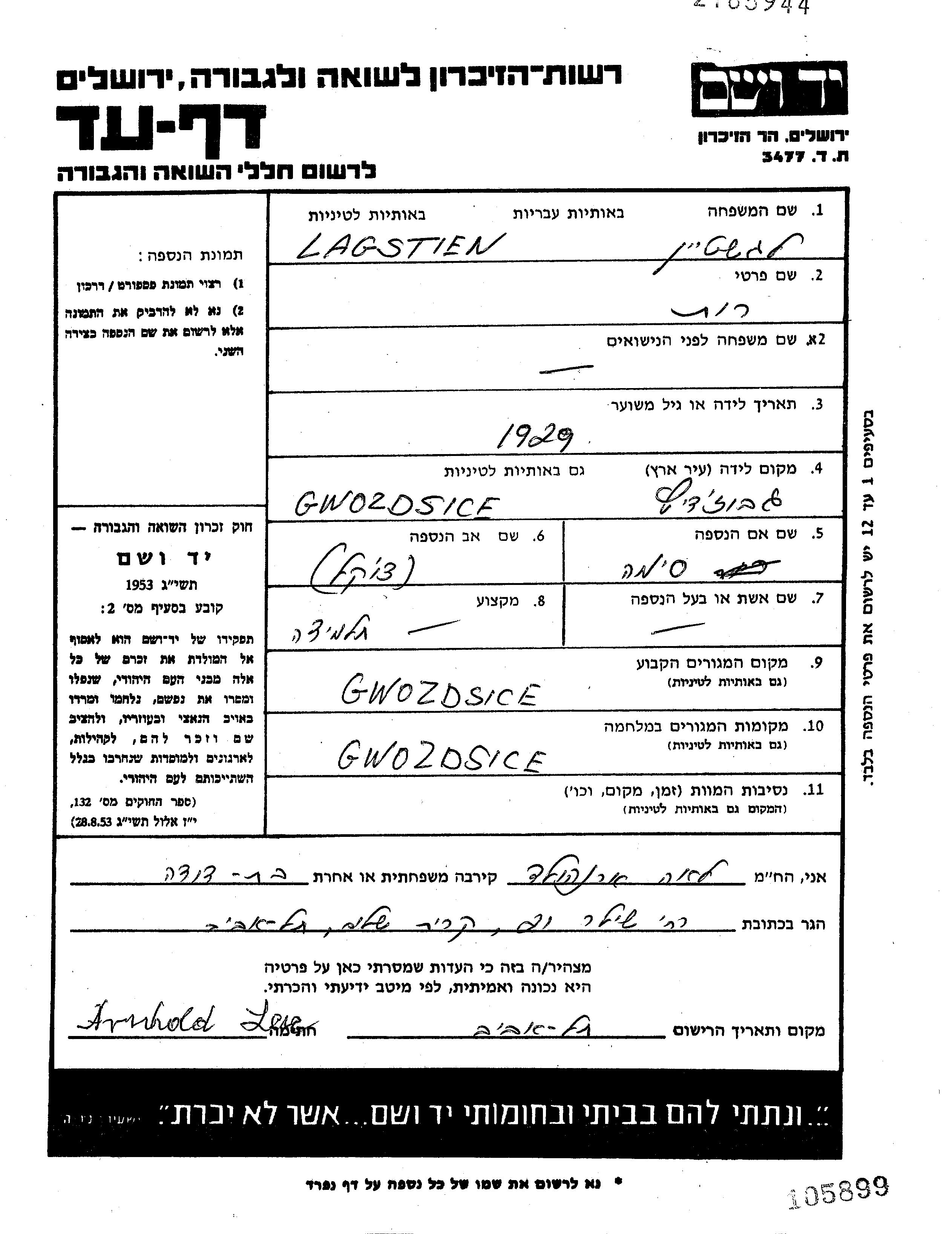 Rut Lagshtein wurde im Jahr 1929 in Gwozdziec, Polen geboren. Sie war Schüler/-in. Vor dem Zweiten Weltkrieg lebte sie in Gwozdziec, Polen.
