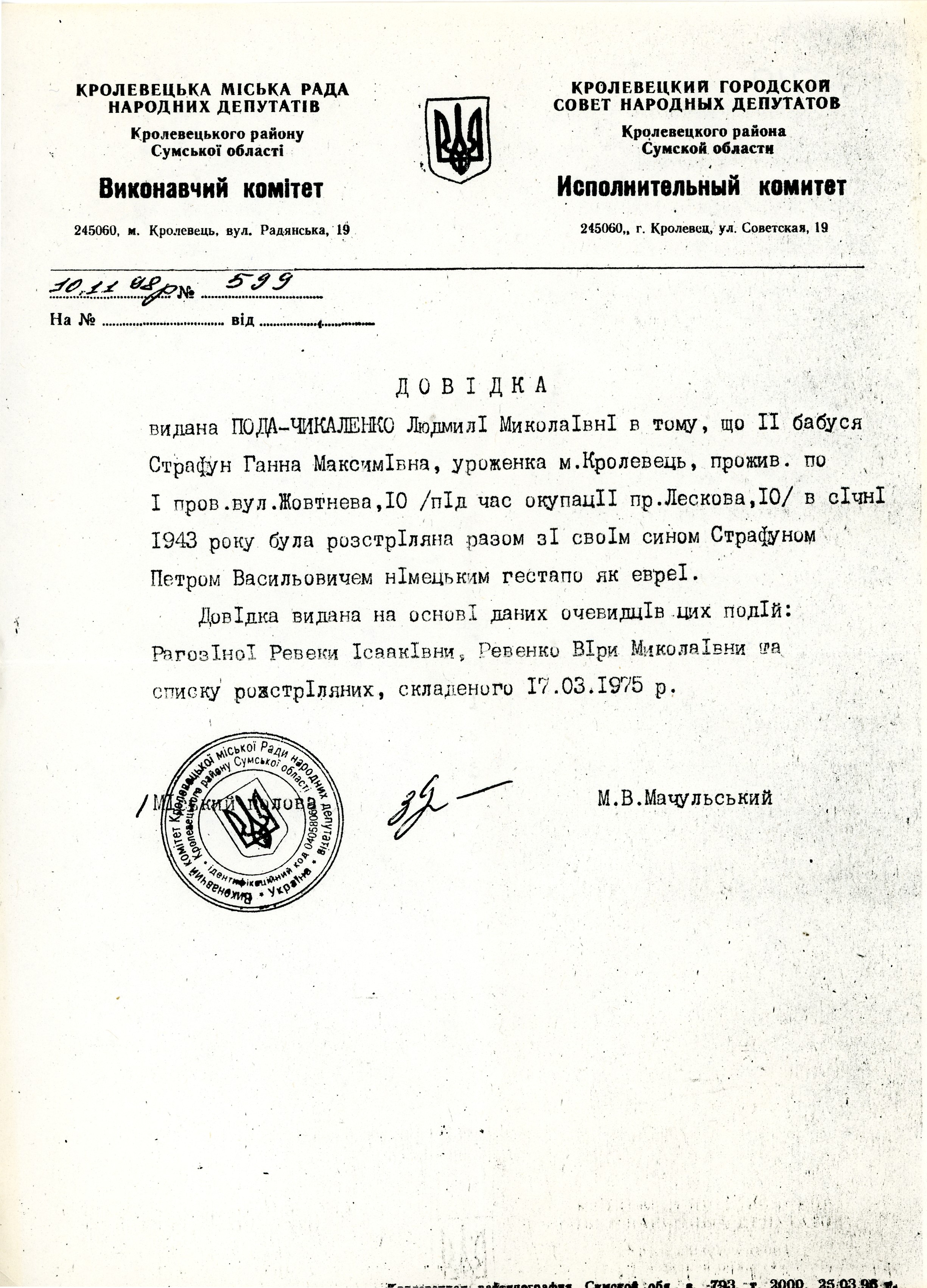 Strafun Petr Krolevets, Ukraine (UdSSR) Bescheinigung