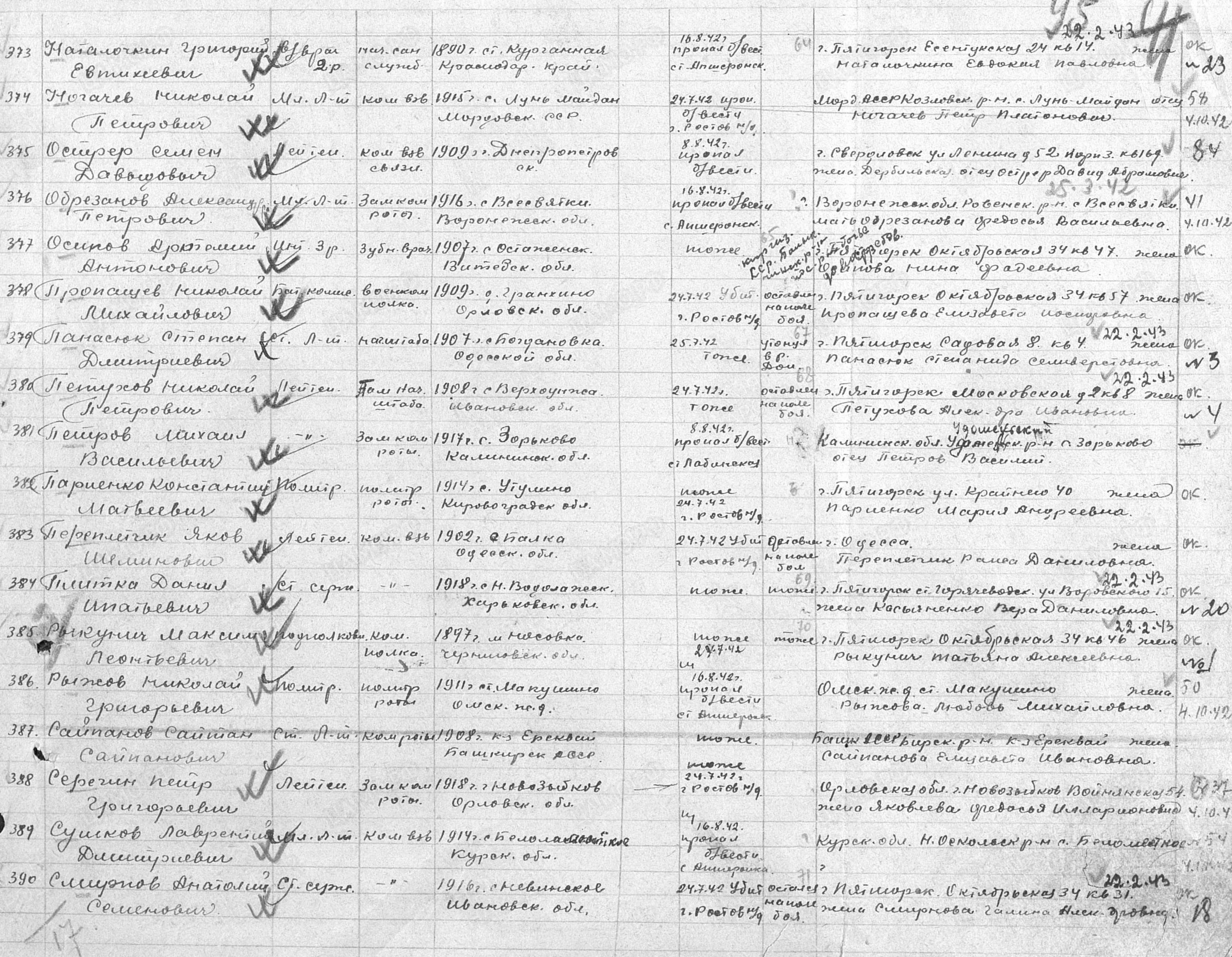 Ostrer Semyon 1909 unbekannter Ort, Death List