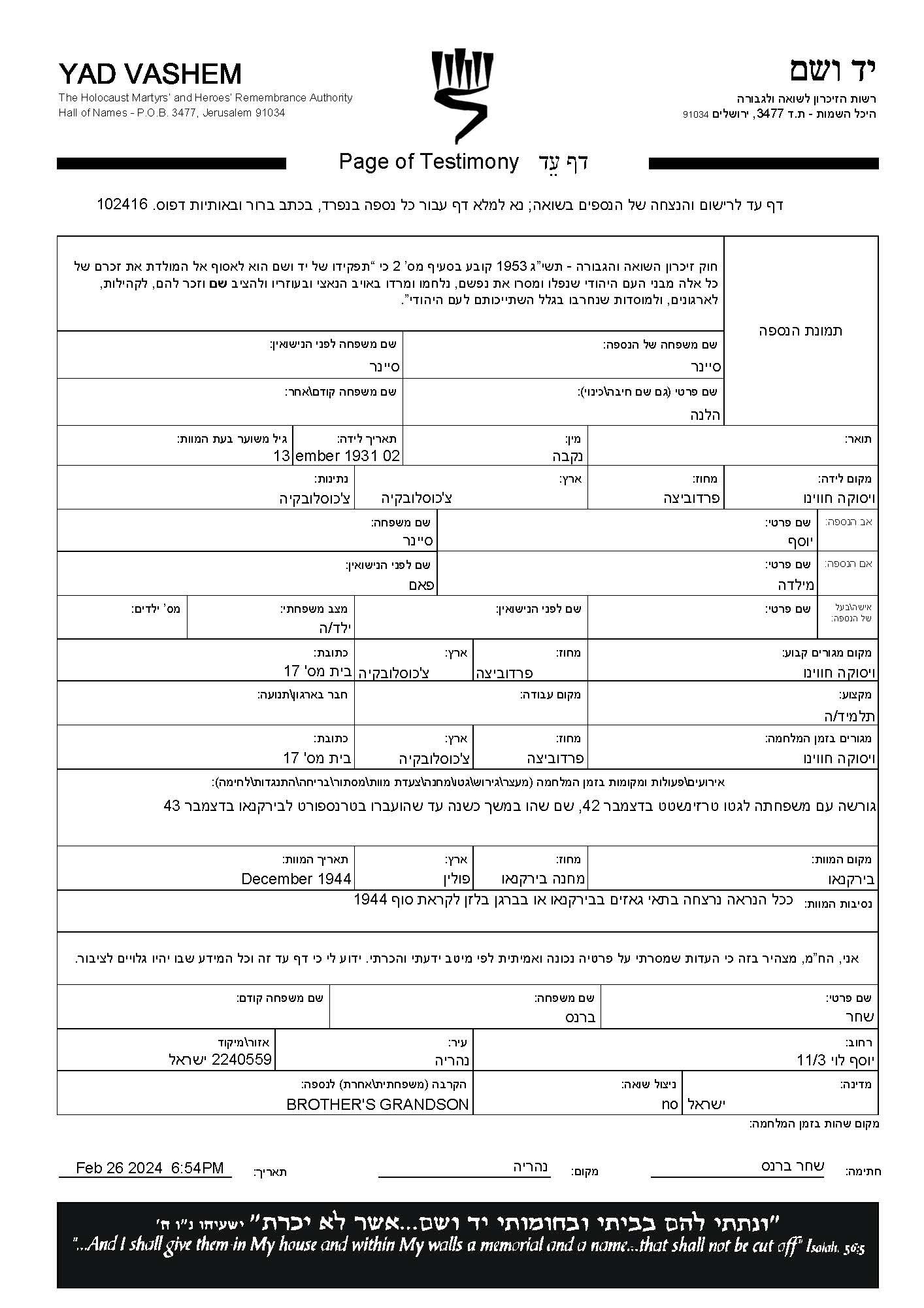 She was apparently murdered in gas chambers in Birkenau or Bergen-Belsen towards the end of 1944