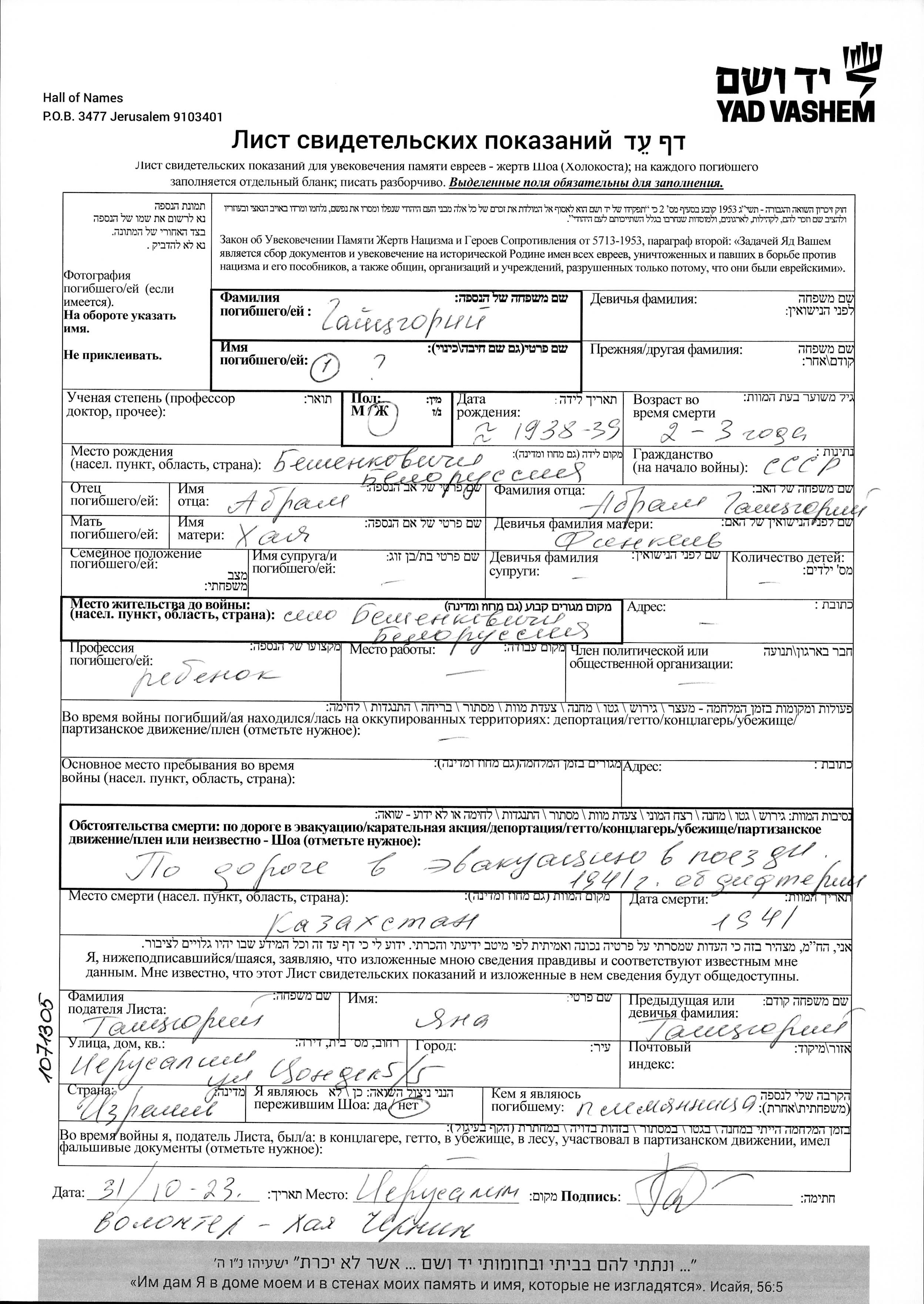 Nach dem Einmarsch der Nazis am 22.6.1941 in die Sovietunion wurden ca. eineinhalb Millionen jüdische Einwohner evakuiert oder flohen ins Innere des Landes. Sie mußten alles hinter sich zurück lassen und unter schwierigsten Bedingungen ohne Nahrung, hartem Wetter und von Krankheiten bedroht Unterschlupf finden.