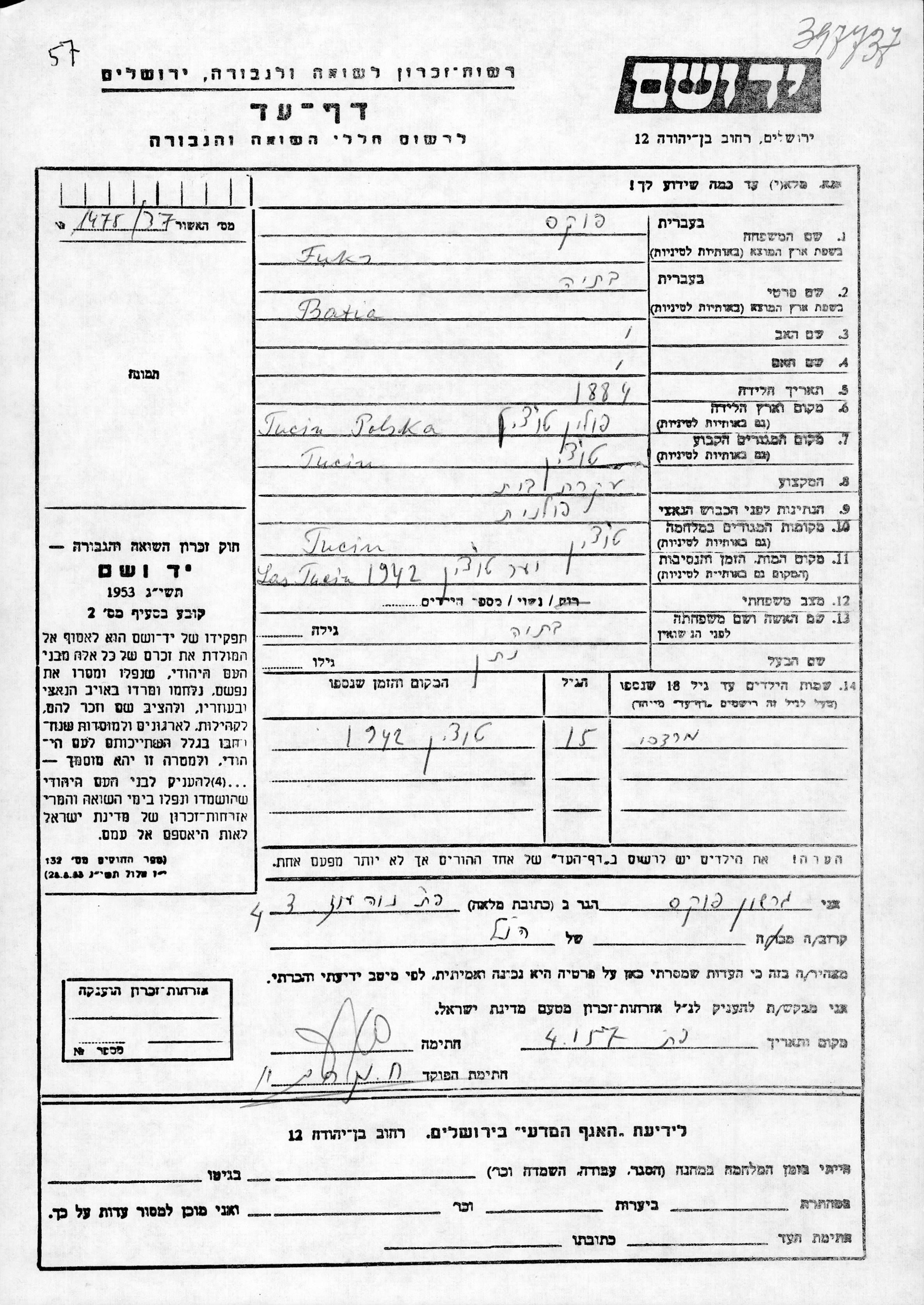 Mordekhai wurde in der Schoah ermordet. Todesort: Tuczyn, Polen im Jahr 1942.