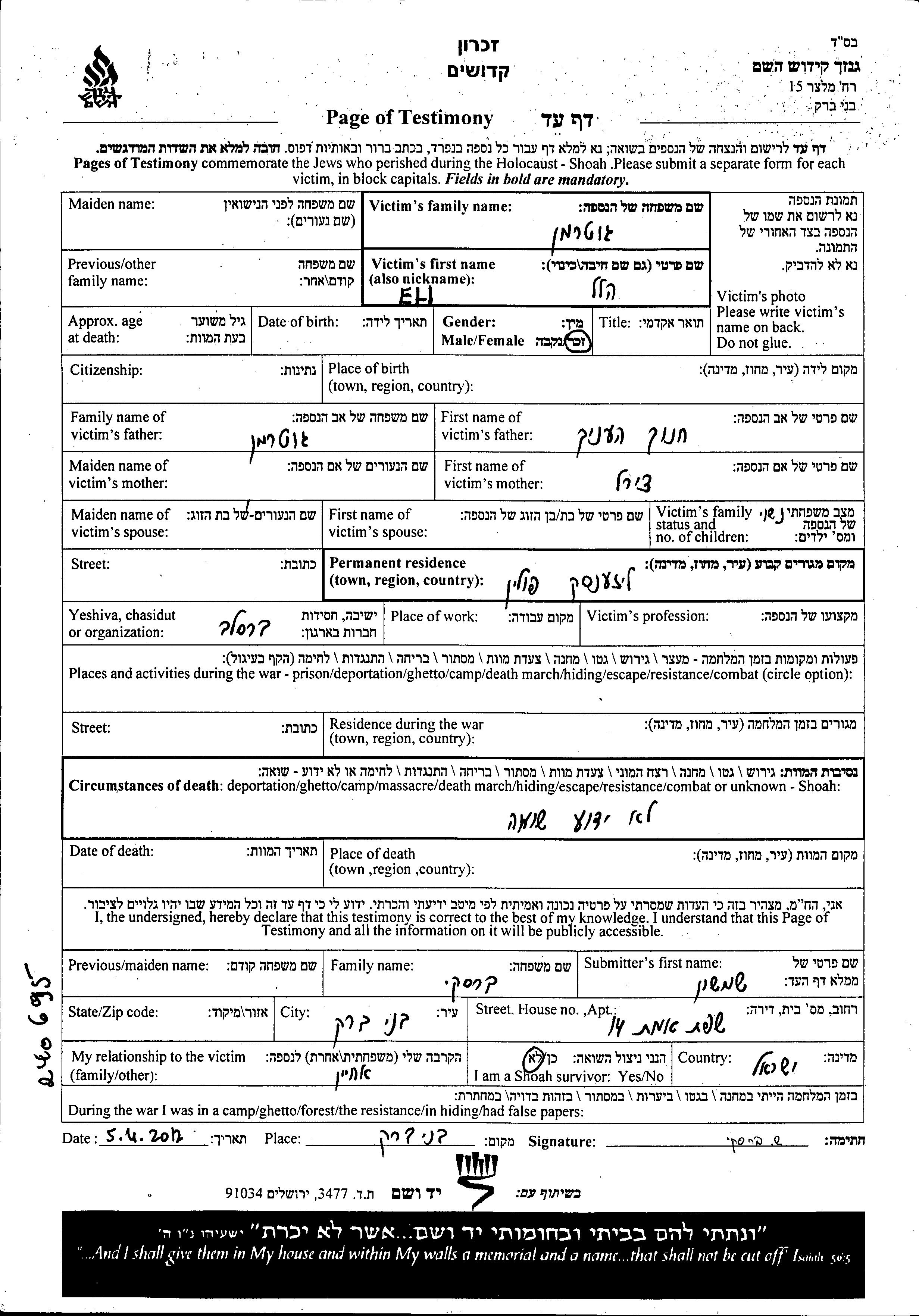 Eli Hilel wurde in der Schoah ermordet. Todesort: unbekannter Ort.