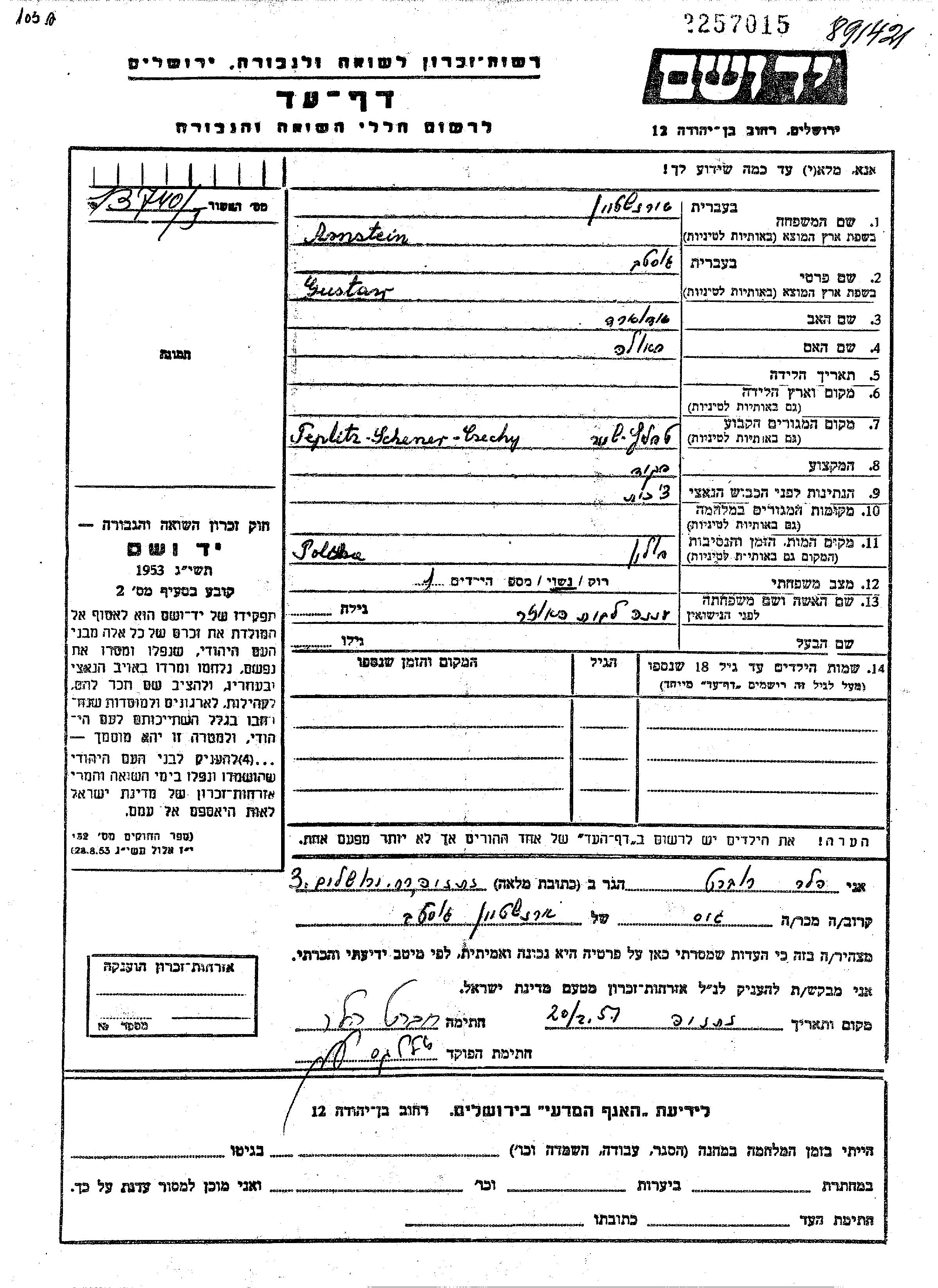 Gustav Arnshtein wurde im Jahr 1904 in Teplitz Schoenau, Tschechoslowakei geboren. Er war Angestellte/-r. Vor dem Zweiten Weltkrieg lebte er in Teplitz Schoenau, Tschechoslowakei.