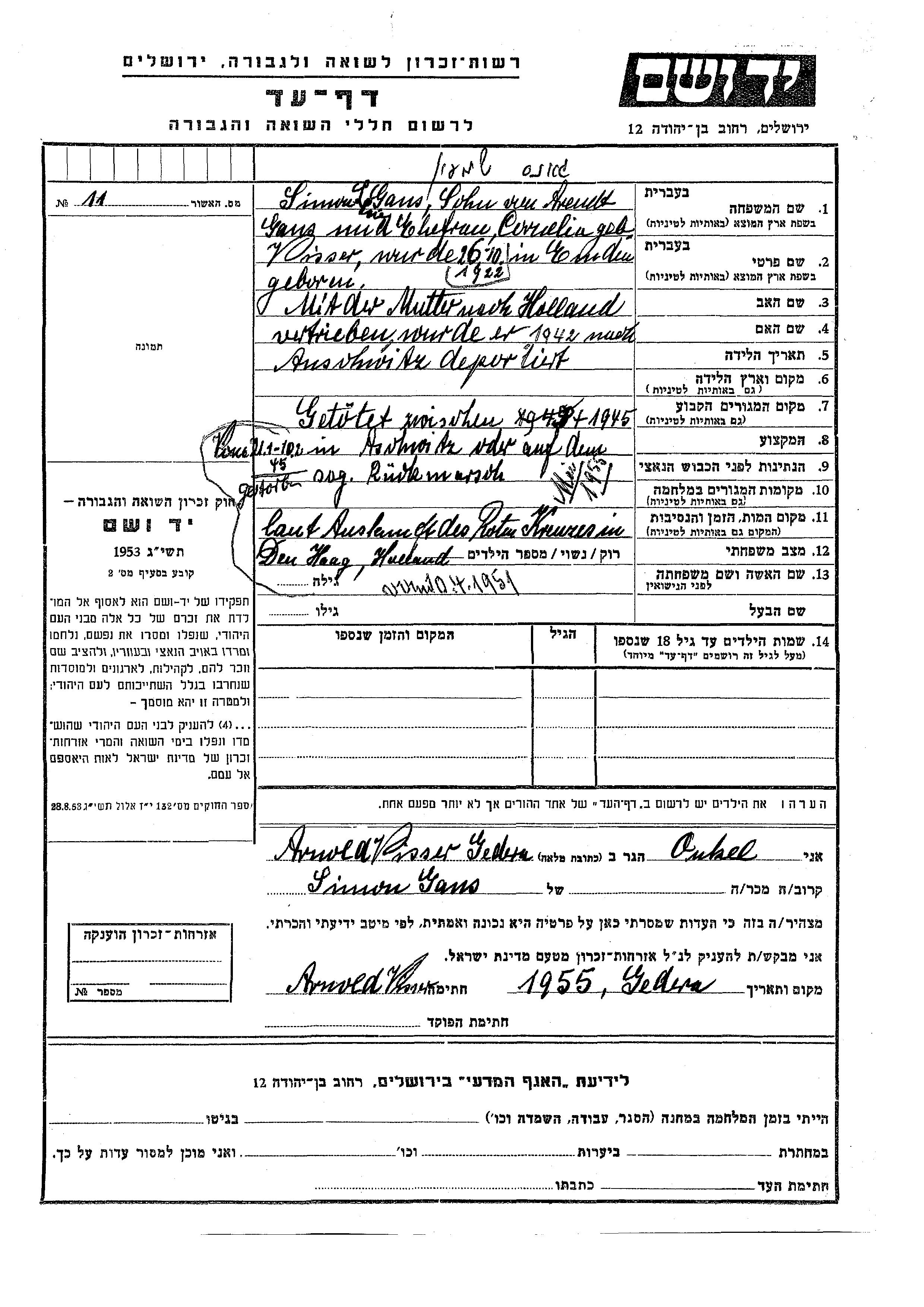 Simon Gans wurde im Jahr 1923 in Emden, Deutsches Reich geboren. Vor dem Zweiten Weltkrieg lebte er in Emden, Deutsches Reich.