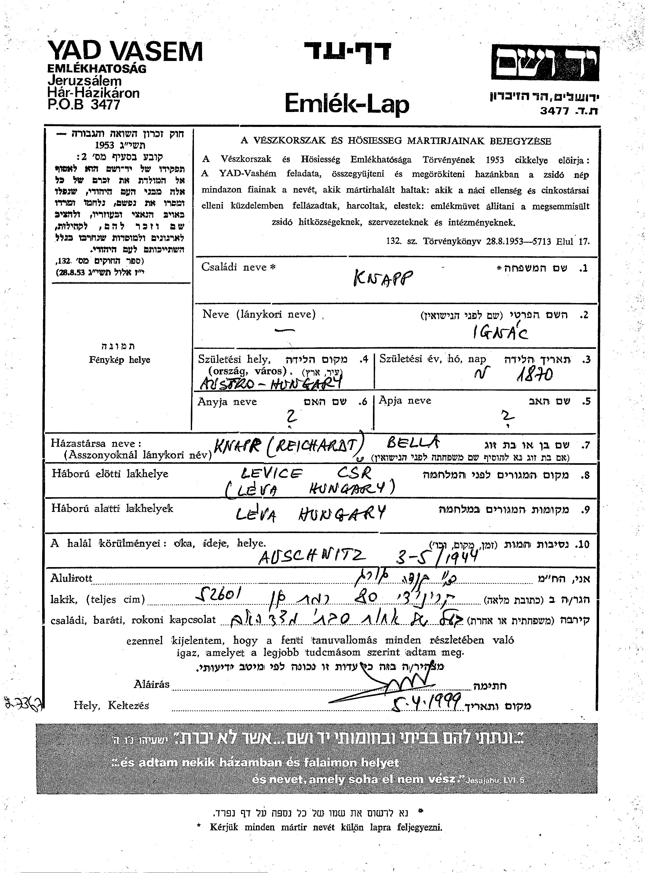 Knapp | Ignac | 1870 | Levice, Tschechoslowakei | Gedenkblatt |