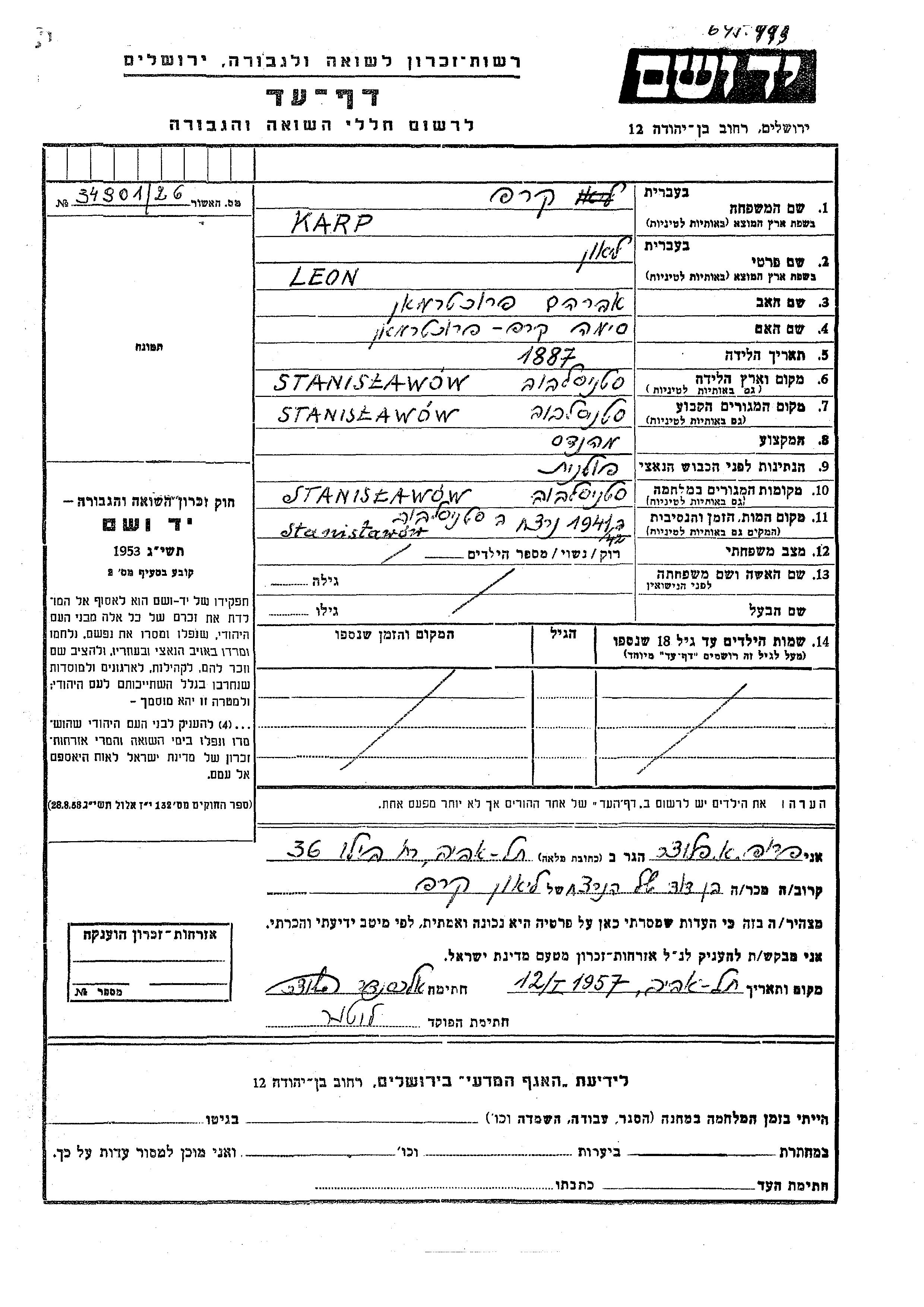Lion wurde in der Schoah ermordet. Todesort: Stanislawow, Polen im Jahr 1942.