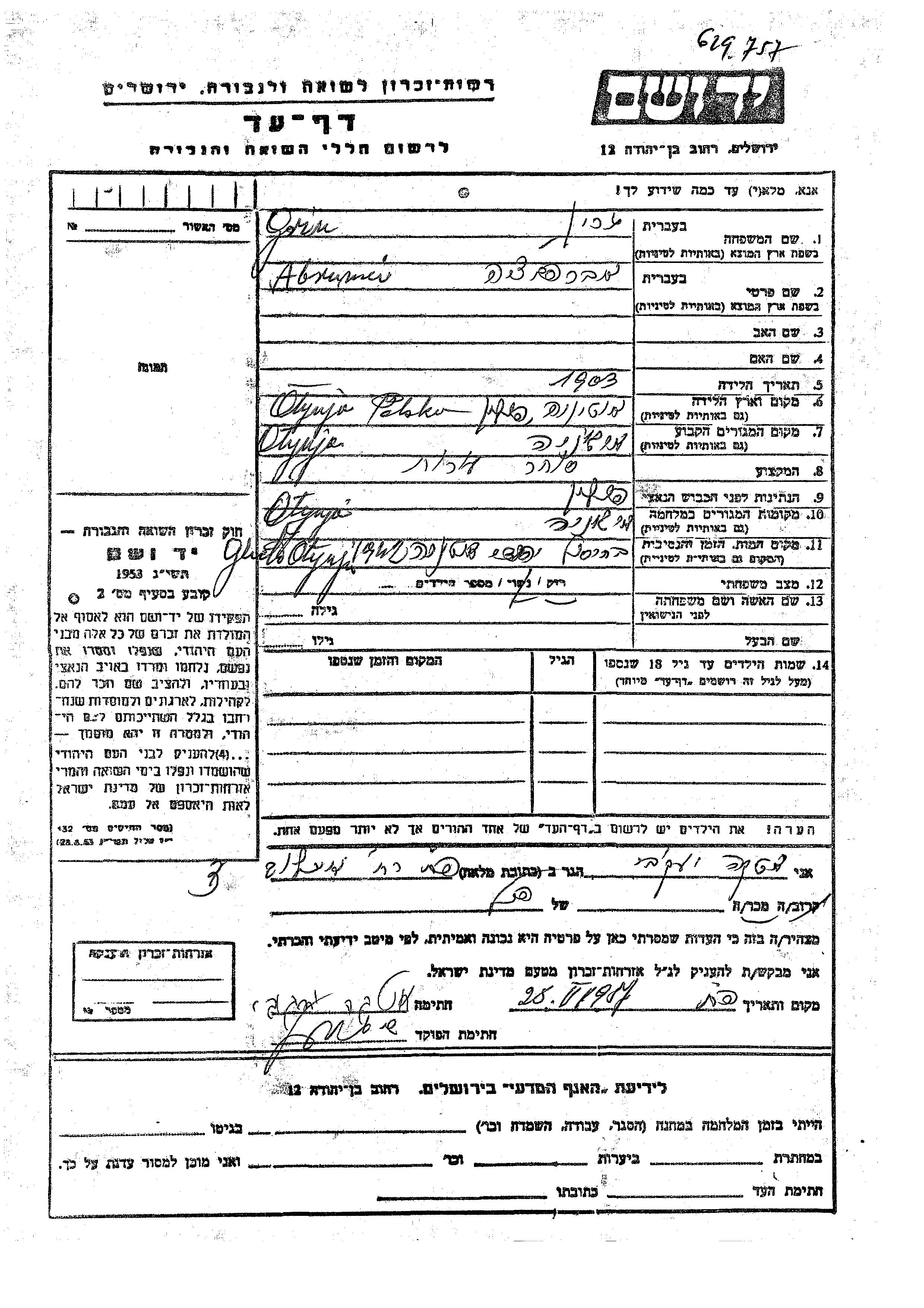 Abrumci Grin wurde im Jahr 1903 in Ottynia, Polen geboren. Er war Lederhändler/-in und Ledig. Vor dem Zweiten Weltkrieg lebte er in Ottynia, Polen. Während des Krieges war er in Ottynia, Polen.