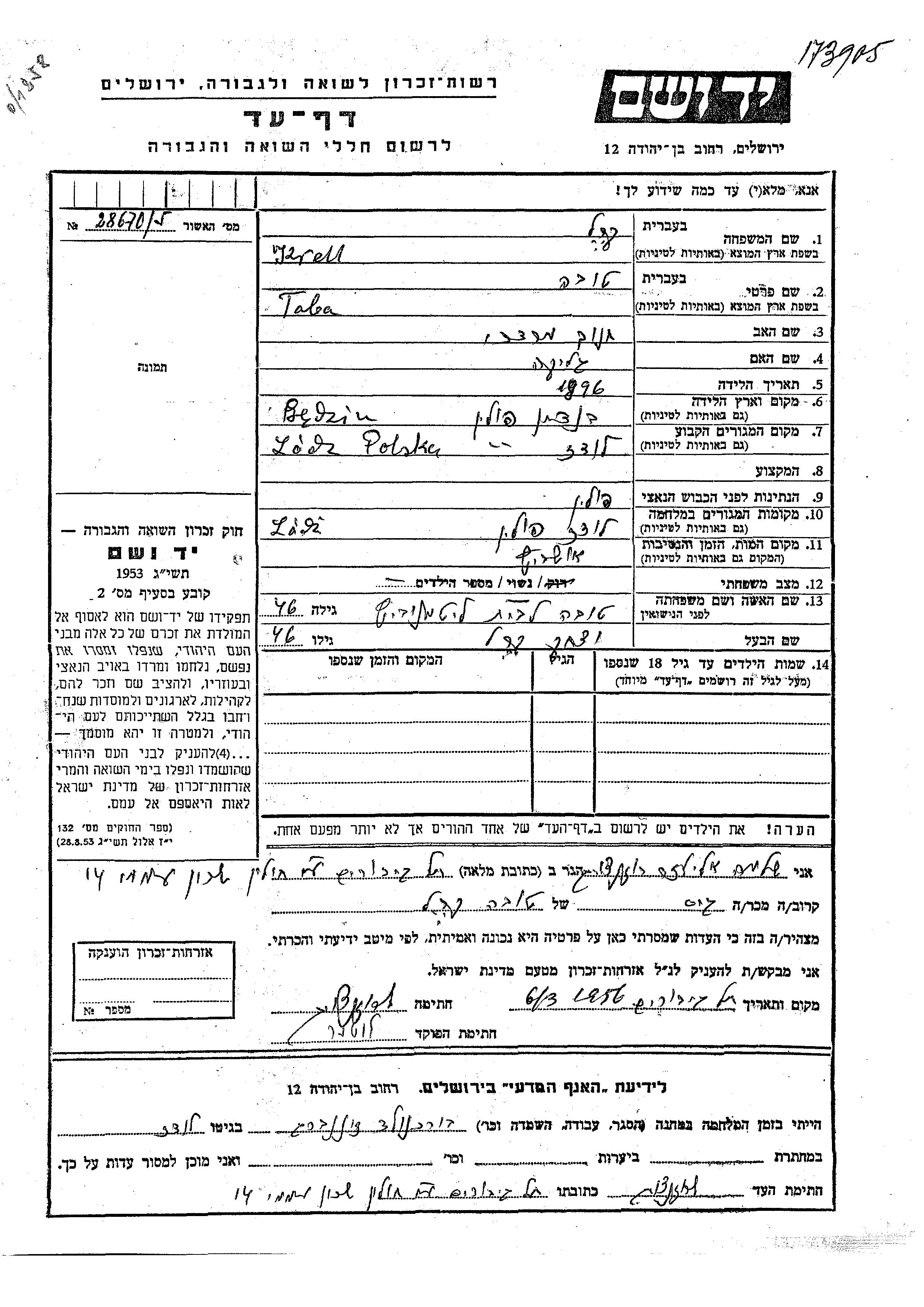 Toba Tova Krell Kral, geb. Litmanovitz wurde im Jahr 1896 in Będzin, Polen geboren. Sie war die Tochter von Khanokh Mordekhai und Glika. Sie war mit Yitzkhak Verheiratet. Vor dem Zweiten Weltkrieg lebte sie in Lodz, Polen. Während des Krieges war sie in Lodz, Polen.