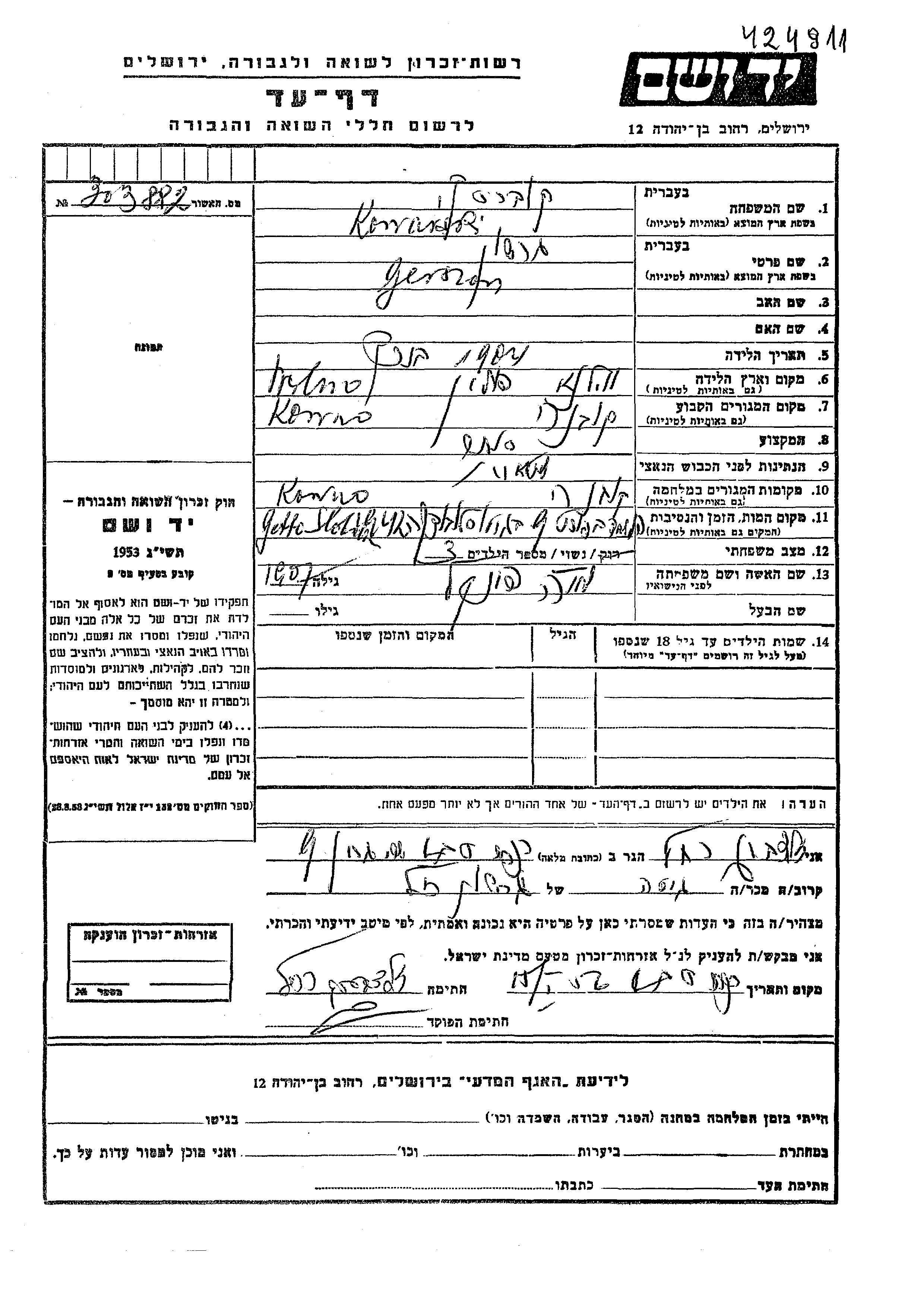 Gerszon Kowarski wurde im Jahr 1904 in Wilno, Polen geboren. Er war Kaufmann/-frau und mit Lea, geb. Finkel Verheiratet. Vor dem Zweiten Weltkrieg lebte er in Kowno, Litauen. Während des Krieges war er in Kowno, Litauen.
