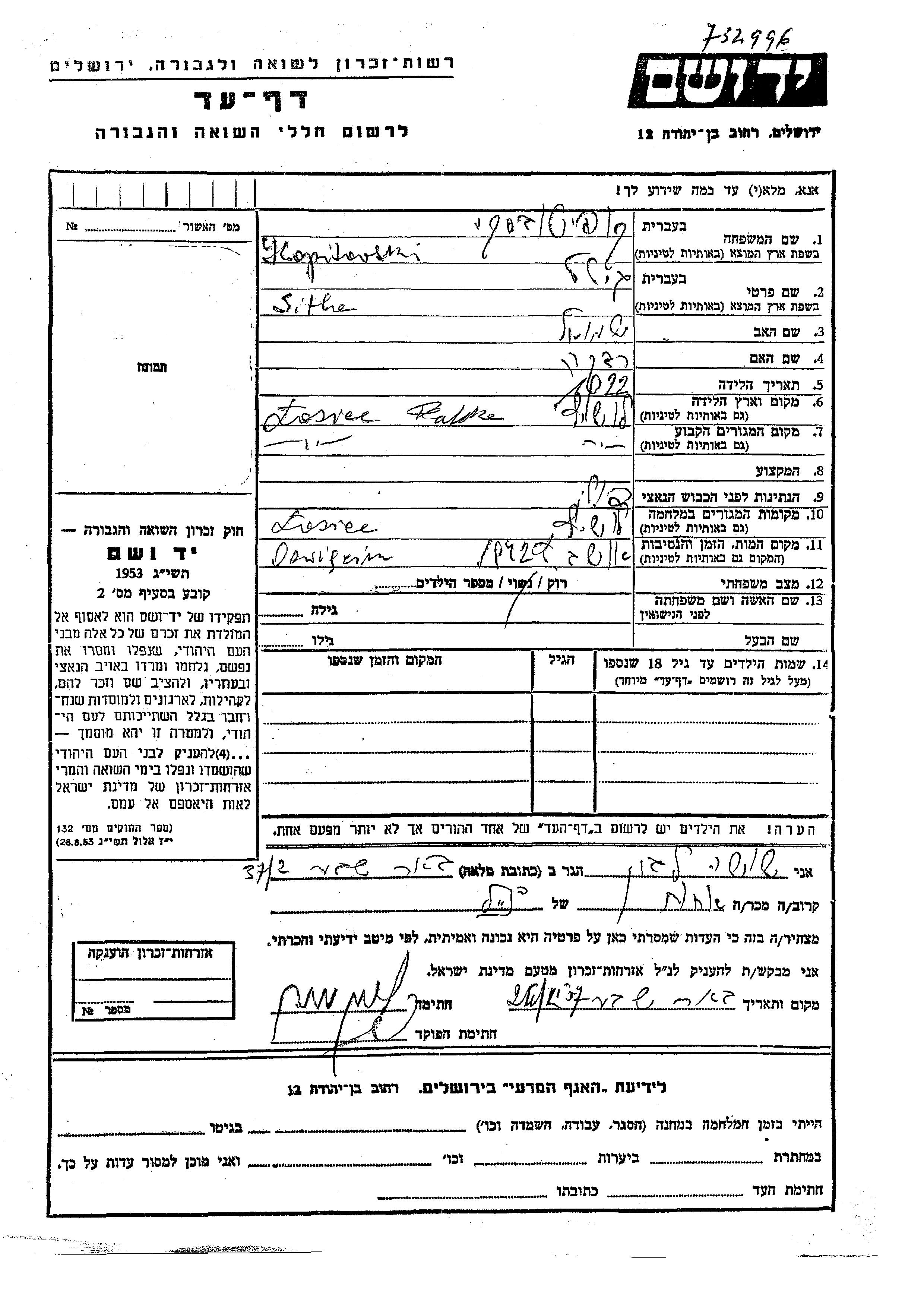 Kopitovski Gitla 1922 Losice, Polen Gedenkblatt