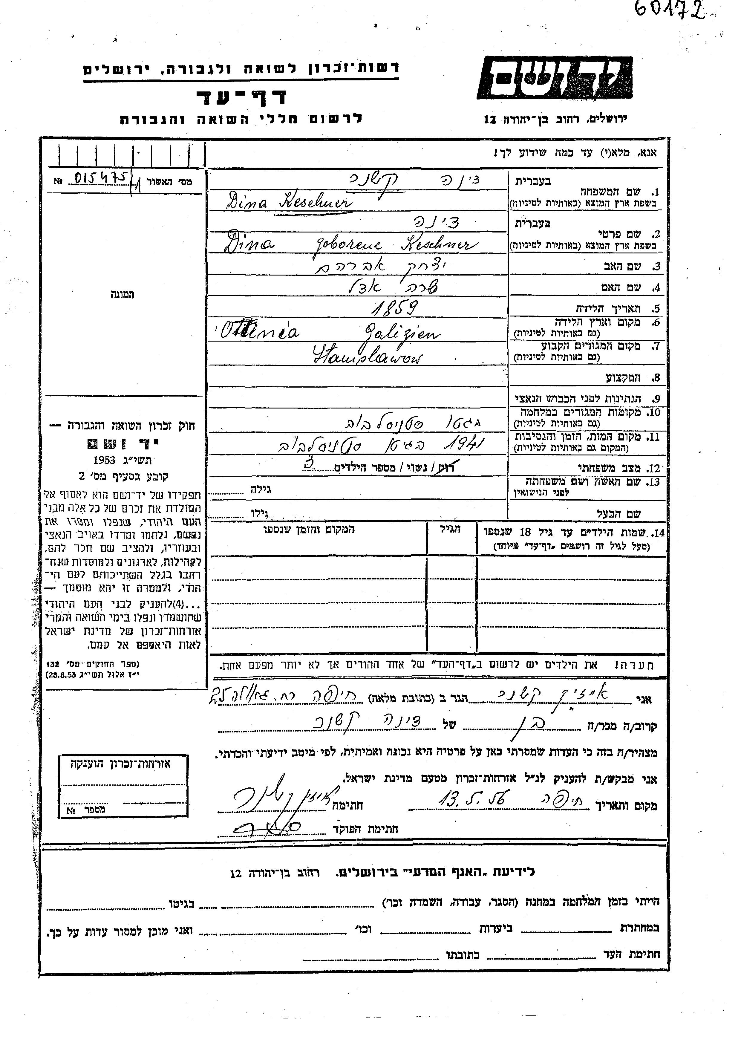 Dina wurde in der Schoah ermordet. Todesort: Stanislawow, Polen im Jahr 1941.